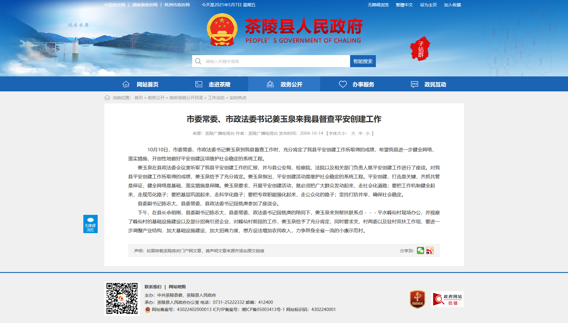 10月10日,市委常委、市政法委书记姜玉泉到我县督查工作时,充分肯定了我县平安创建工作所取得的成绩,希望我县进一步健全网络,落实措施,开创性地做好平安创建这项维护社会稳定的系统工程。
