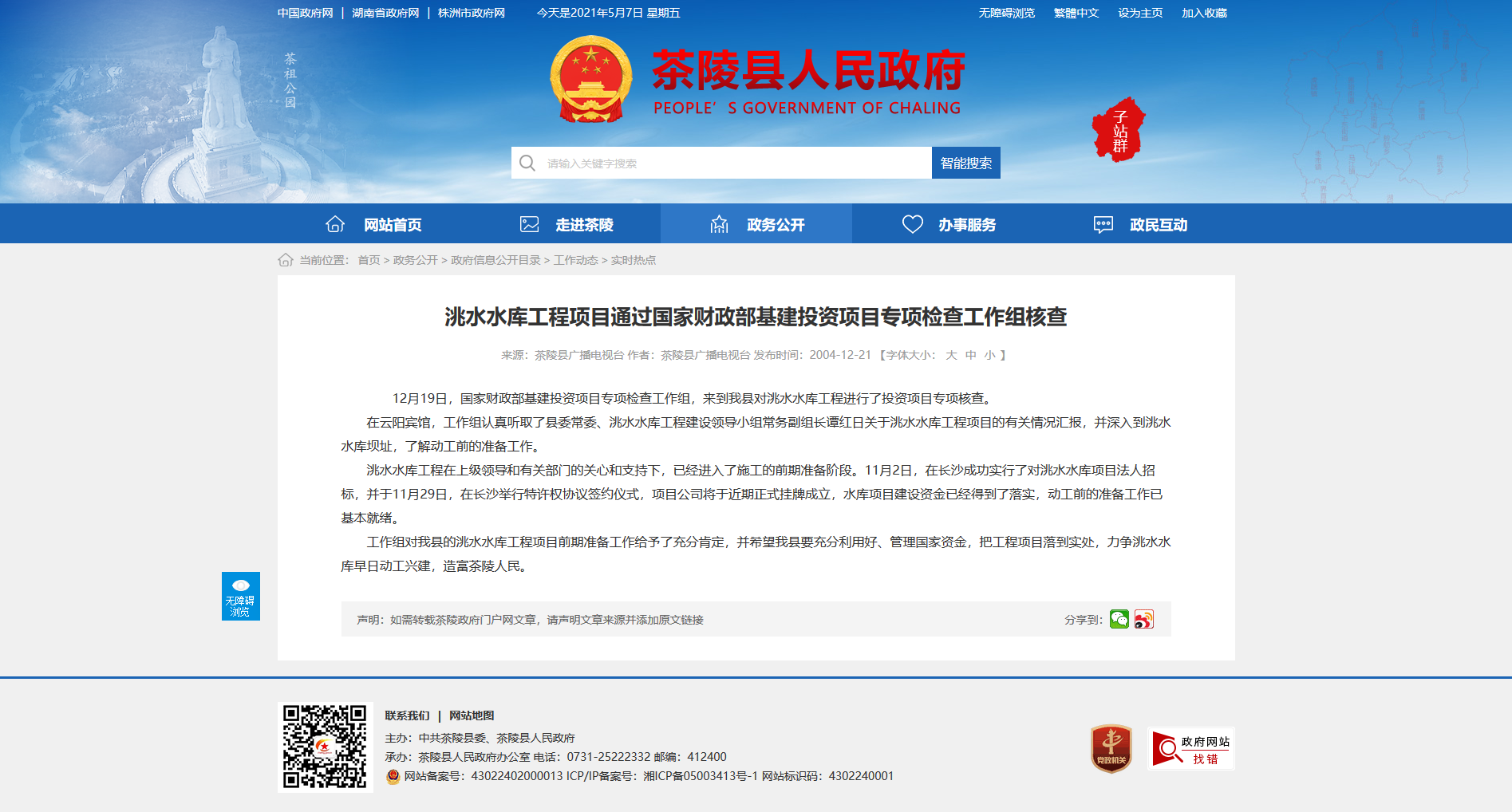 工作组对我县的洮水水库工程项目前期准备工作给予了充分肯定,并希望我县要充分利用好、管理国家资金,把工程项目落到实处,力争洮水水库早日动工兴建,造富茶陵人民。