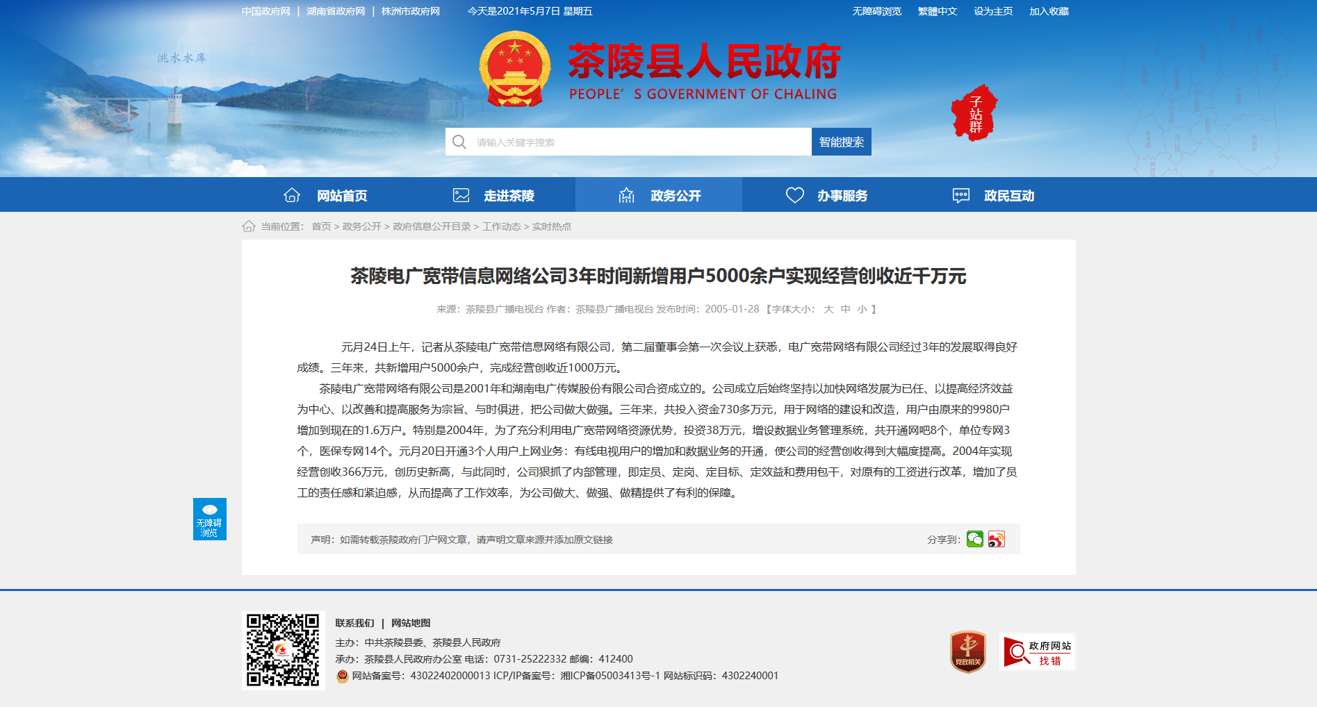 元月24日上午,记者从茶陵电广宽带信息网络有限公司,第二届董事会第一次会议上获悉,电广宽带网络有限公司经过3年的发展取得良好成绩。三年来,共新增用户5000余户,完成经营创收近1000万元。