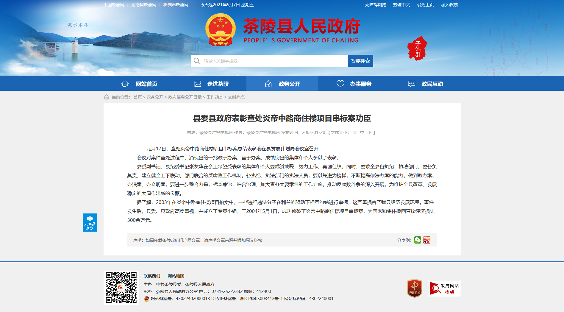 据了解,2003年在炎帝中路商住楼项目拍卖中,一些违纪违法分子在利益的驱动下相互勾结进行串标,这严重损害了我县经济发展环境。事件发生后,县委、县政府高度重视,并成立了专案小组,于2004年5月1日,成功侦破了炎帝中路商住楼项目串标案,为国家和集体挽回直接经济损失300余万元。