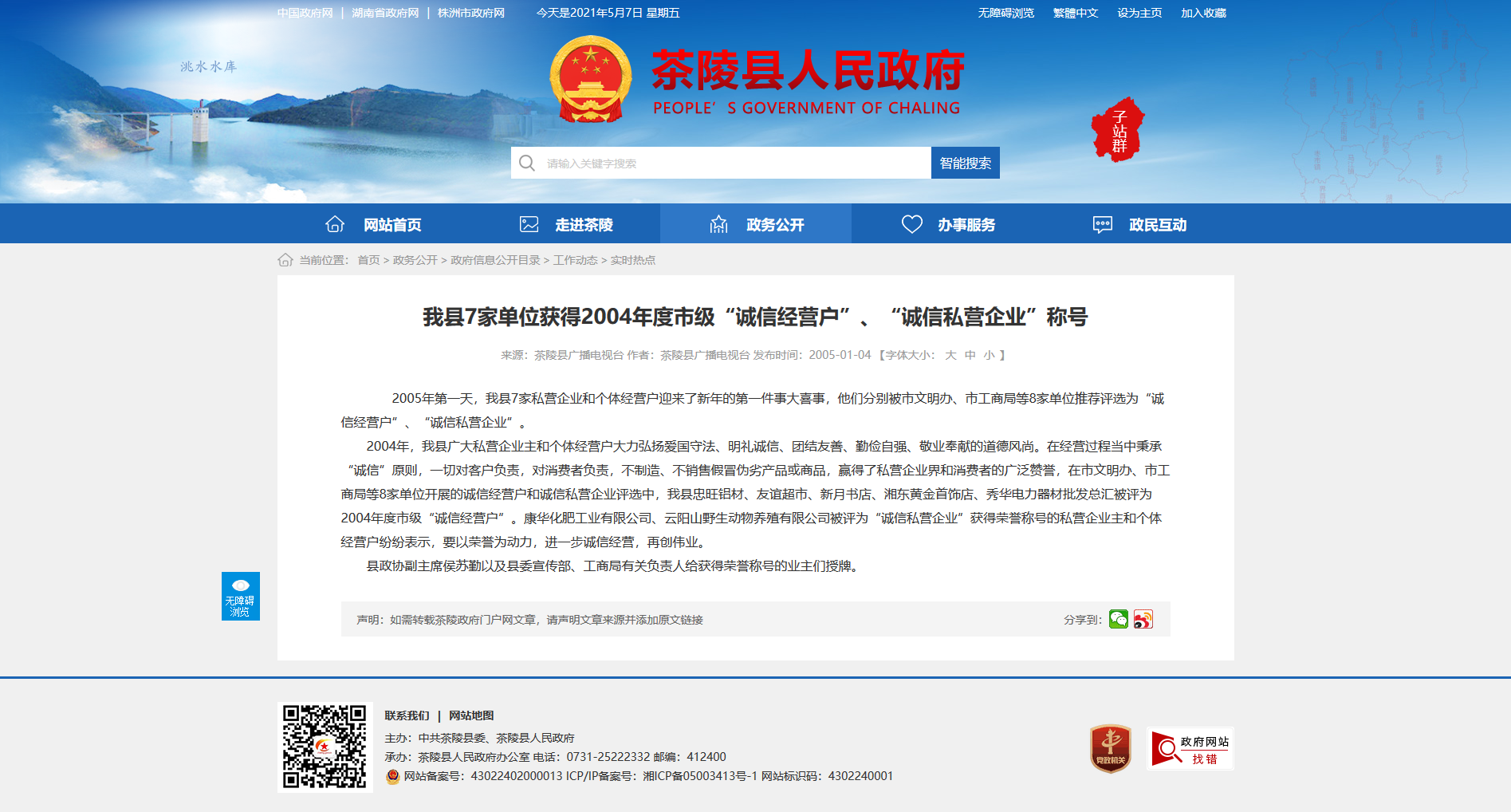 2004年,我县广大私营企业主和个体经营户大力弘扬爱国守法、明礼诚信、团结友善、勤俭自强、敬业奉献的道德风尚。在经营过程当中秉承“诚信”原则,一切对客户负责,对消费者负责,不制造、不销售假冒伪劣产品或商品,赢得了私营企业界和消费者的广泛赞誉,在市文明办、市工商局等8家单位开展的诚信经营户和诚信私营企业评选中,我县忠旺铝材、友谊超市、新月书店、湘东黄金首饰店、秀华电力器材批发总汇被评为2004年度市级“诚信经营户”。康华化肥工业有限公司、云阳山野生动物养殖有限公司被评为“诚信私营企业”获得荣誉称号的私营企业主和个体经营户纷纷表示,要以荣誉为动力,进一步诚信经营,再创伟业。