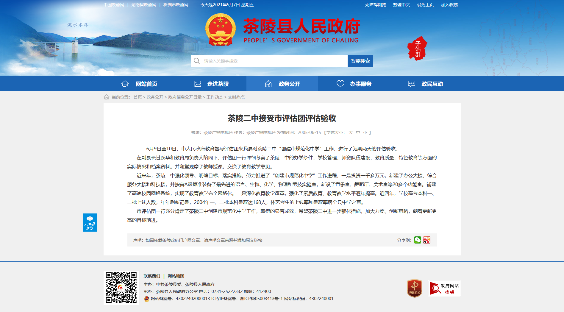 市评估团一行充分肯定了茶陵二中创建市规范化中学工作,取得的显著成效,希望茶陵二中进一步强化措施,加大力度、创新思路,朝着更新更高的目标前进。