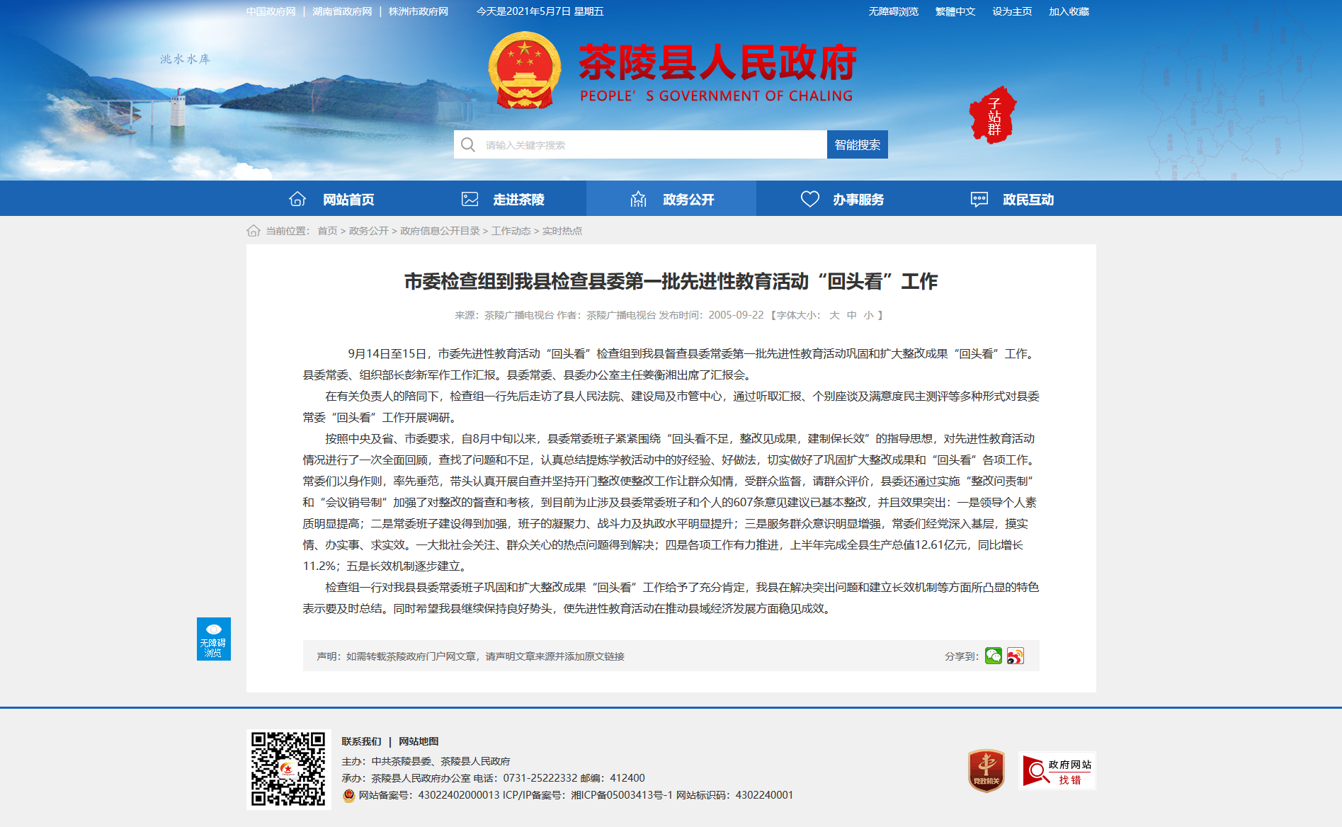 按照中央及省、市委要求,自8月中旬以来,县委常委班子紧紧围绕“回头看不足,整改见成果,建制保长效”的指导思想,对先进性教育活动情况进行了一次全面回顾,查找了问题和不足,认真总结提炼学教活动中的好经验、好做法,切实做好了巩固扩大整改成果和“回头看”各项工作。常委们以身作则,率先垂范,带头认真开展自查并坚持开门整改使整改工作让群众知情,受群众监督,请群众评价,县委还通过实施“整改问责制”和“会议销号制”加强了对整改的督查和考核,到目前为止涉及县委常委班子和个人的607条意见建议已基本整改,并且效果突出:一是领导个人素质明显提高;二是常委班子建设得到加强,班子的凝聚力、战斗力及执政水平明显提升;三是服务群众意识明显增强,常委们经党深入基层,摸实情、办实事、求实效。一大批社会关注、群众关心的热点问题得到解决;四是各项工作有力推进,上半年完成全县生产总值12.61亿元,同比增长11.2%;五是长效机制逐步建立。