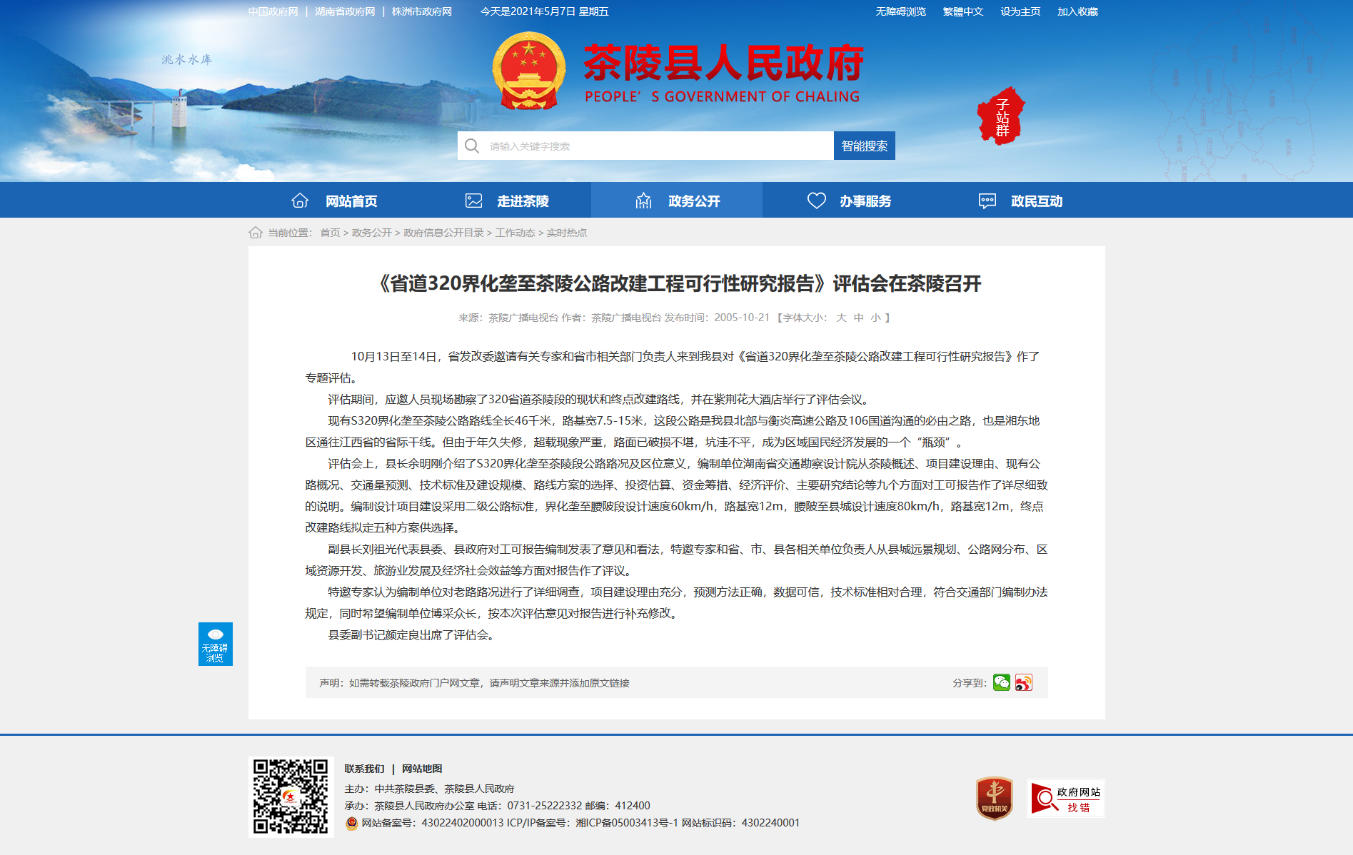 评估期间,应邀人员现场勘察了320省道茶陵段的现状和终点改建路线,并在紫荆花大酒店举行了评估会议。