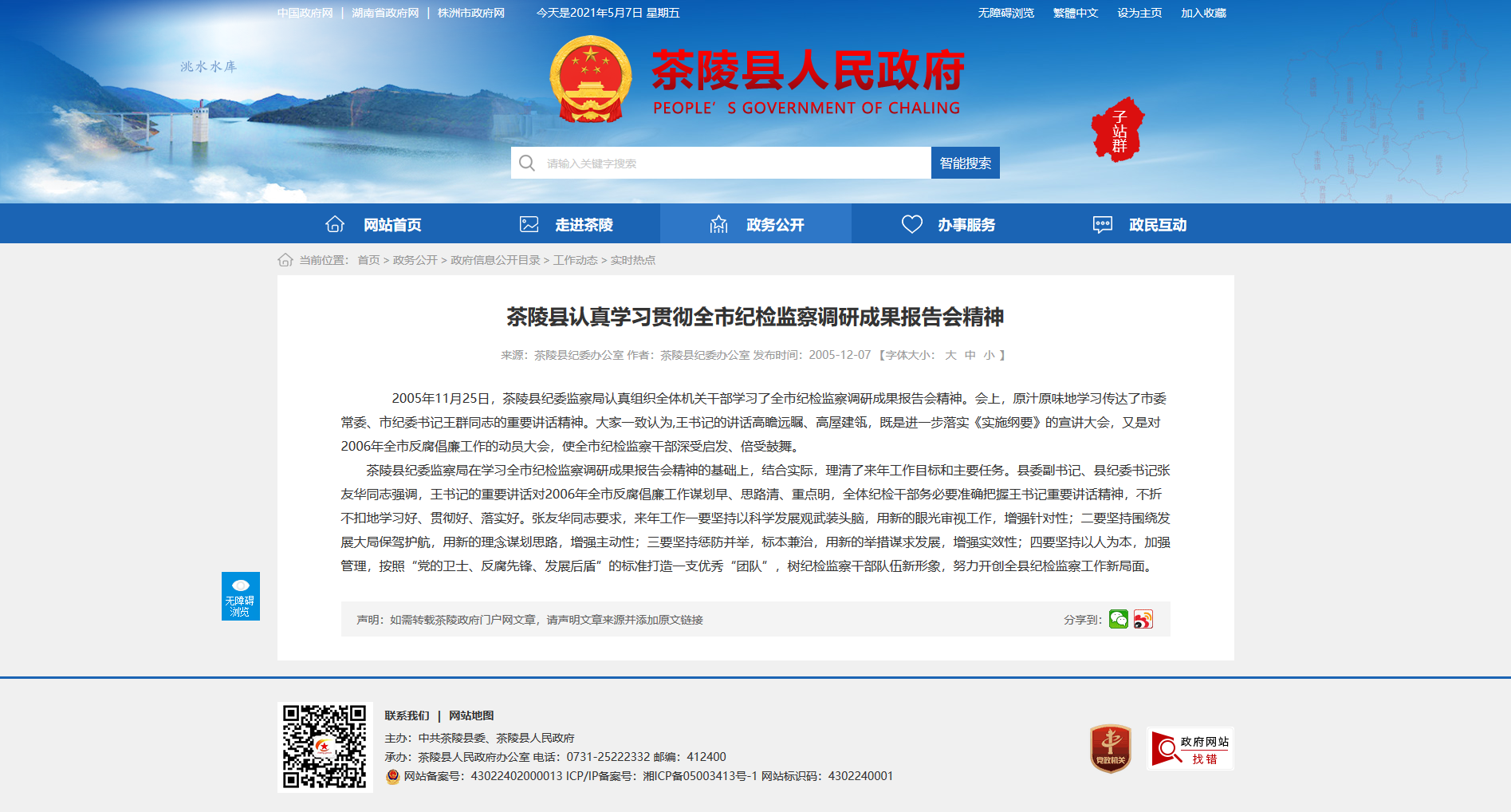 2005年11月25日,茶陵县纪委监察局认真组织全体机关干部学习了全市纪检监察调研成果报告会精神。会上,原汁原味地学习传达了市委常委、市纪委书记王群同志的重要讲话精神。大家一致认为,王书记的讲话高瞻远瞩、高屋建瓴,既是进一步落实《实施纲要》的宣讲大会,又是对2006年全市反腐倡廉工作的动员大会,使全市纪检监察干部深受启发、倍受鼓舞。