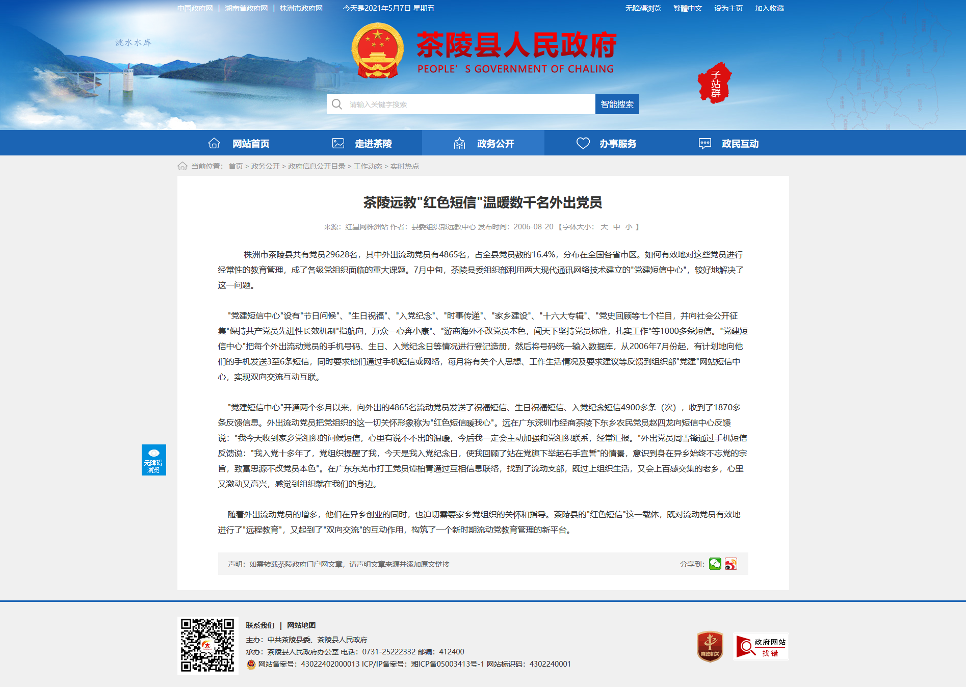 随着外出流动党员的增多,他们在异乡创业的同时,也迫切需要家乡党组织的关怀和指导。茶陵县的"红色短信"这一载体,既对流动党员有效地进行了"远程教育",又起到了"双向交流"的互动作用,构筑了一个新时期流动党教育管理的新平台。