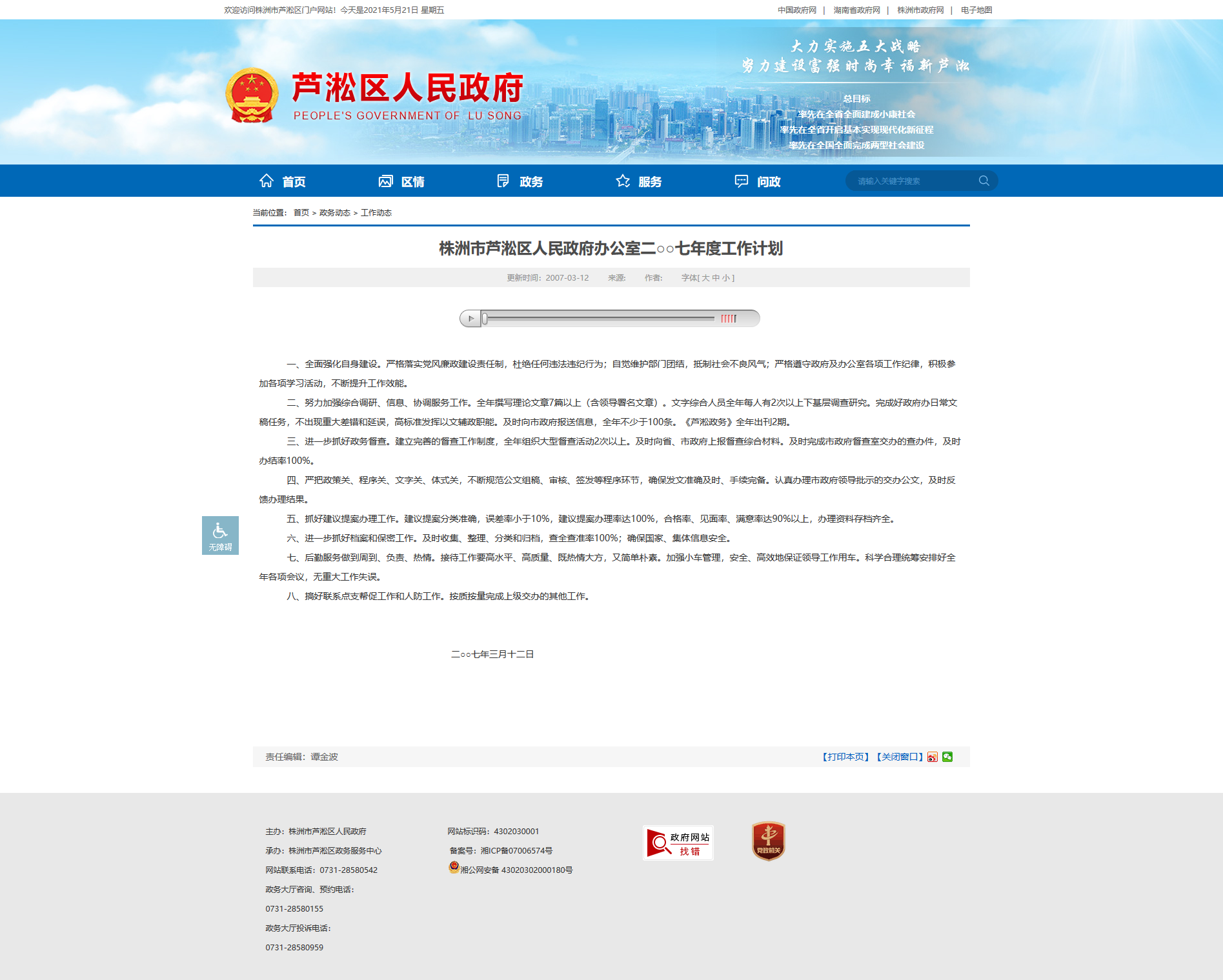 株洲市芦淞区人民政府办公室二○○七年度工作计划