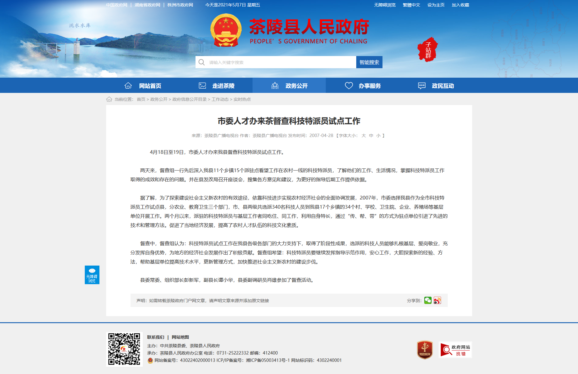 督查中,督查组认为:科技特派员试点工作在我县各级各部门的大力支持下,取得了阶段性成果,选派的科技人员能够扎根基层、爱岗敬业,充分发挥自身优势,为地方的经济社会发展作出了积极贡献。督查组希望:科技特派员要继续发挥指导示范作用,安心工作,大胆探索新的经验、方法,帮助基层单位提高技术水平,更新管理方式,加快推进社会主义新农村的建设步伐。