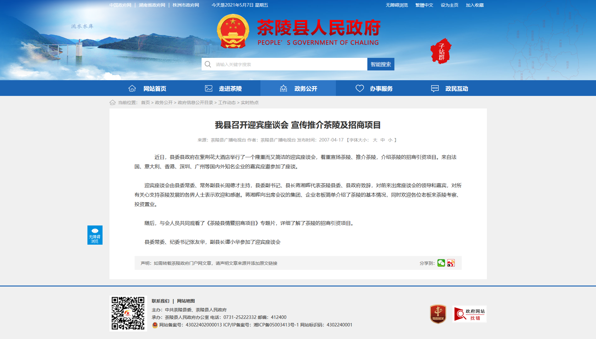 县委常委、纪委书记张友华,副县长谭小华参加了迎宾座谈会