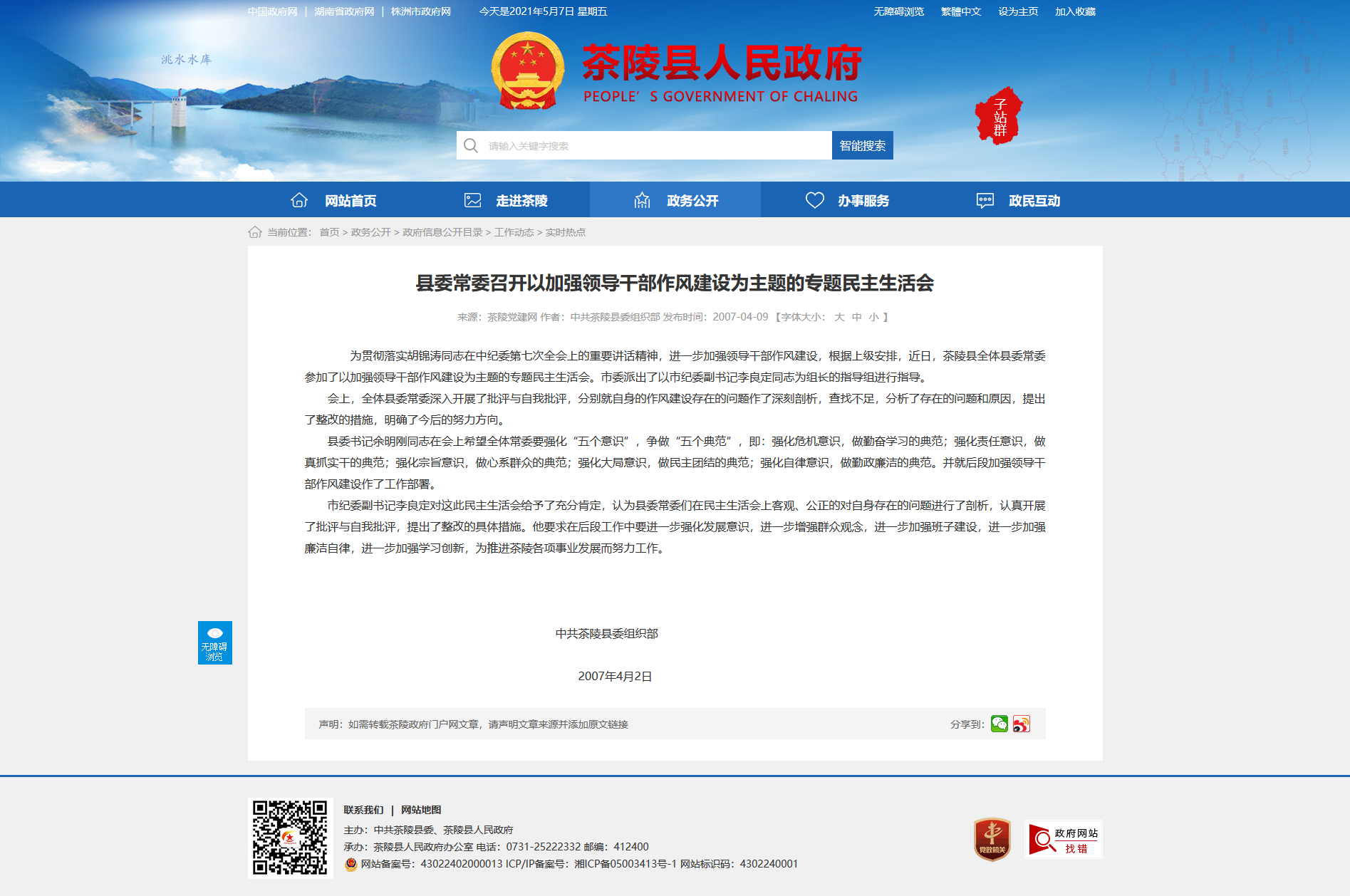 为贯彻落实胡锦涛同志在中纪委第七次全会上的重要讲话精神,进一步加强领导干部作风建设,根据上级安排,近日,茶陵县全体县委常委参加了以加强领导干部作风建设为主题的专题民主生活会。市委派出了以市纪委副书记李良定同志为组长的指导组进行指导。