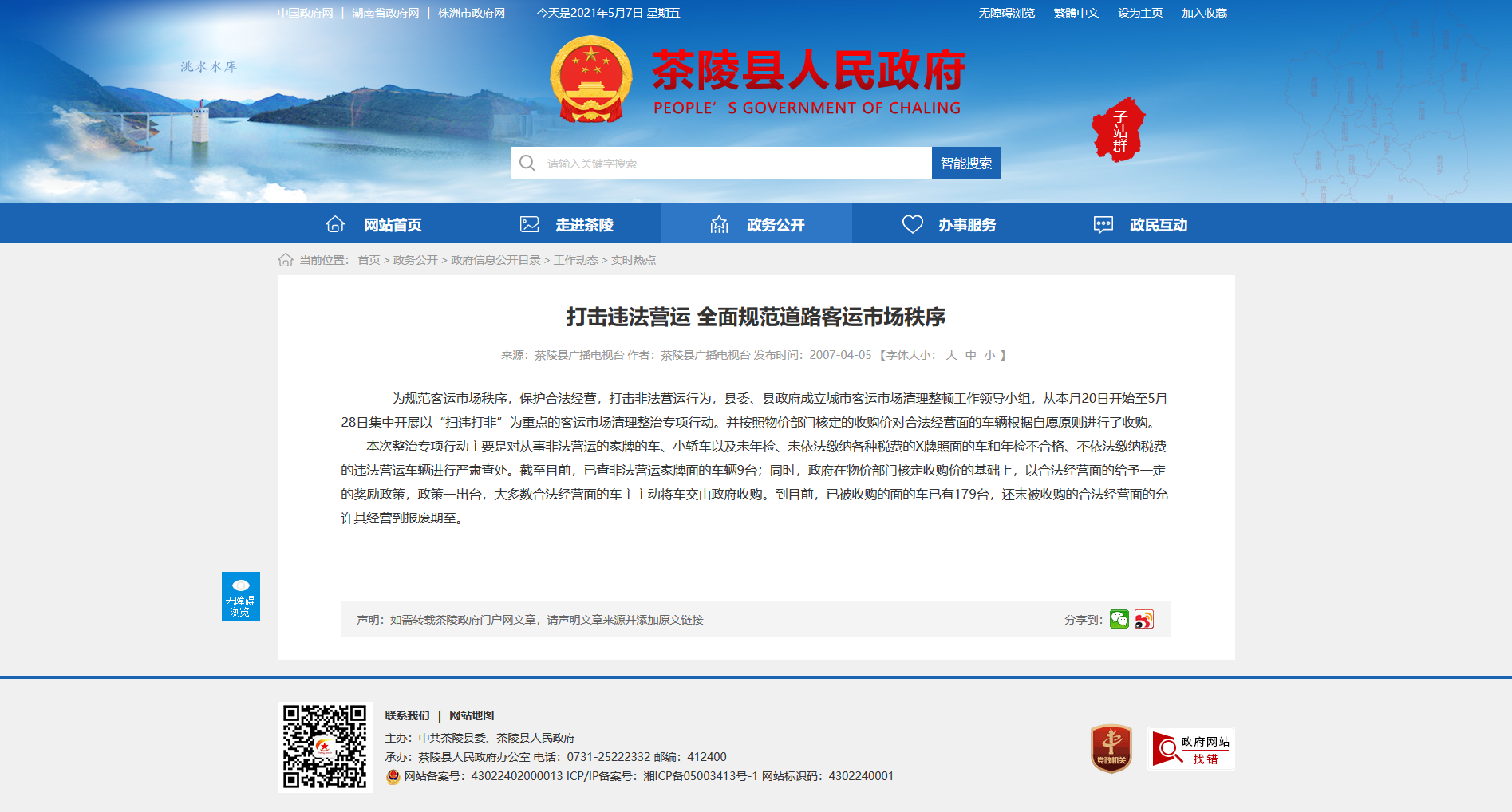 为规范客运市场秩序,保护合法经营,打击非法营运行为,县委、县政府成立城市客运市场清理整顿工作领导小组,从本月20日开始至5月28日集中开展以“扫违打非”为重点的客运市场清理整治专项行动。并按照物价部门核定的收购价对合法经营面的车辆根据自愿原则进行了收购。