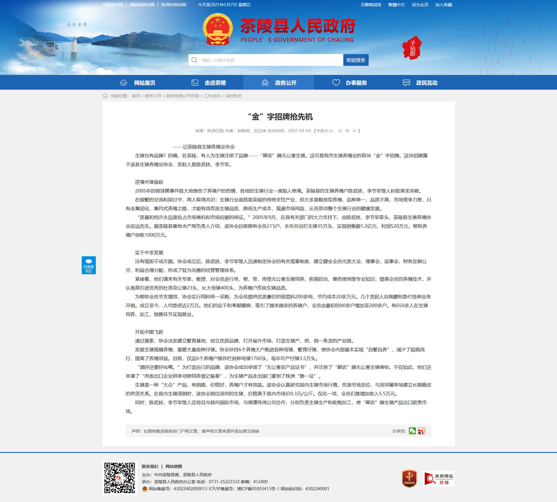 “质量和档次永远是抢占市场商机和市场份额的保证。”2005年9月,在县有关部门的大力支持下,由陈武林、李节军牵头,茶陵县生猪养殖协会应运而生。据茶陵县畜牧水产局负责人介绍,该协会目前拥有会员215户,去年共出栏生猪35万头,实现销售额1.2亿元、利润520万元,帮助养殖户创收1000万元。