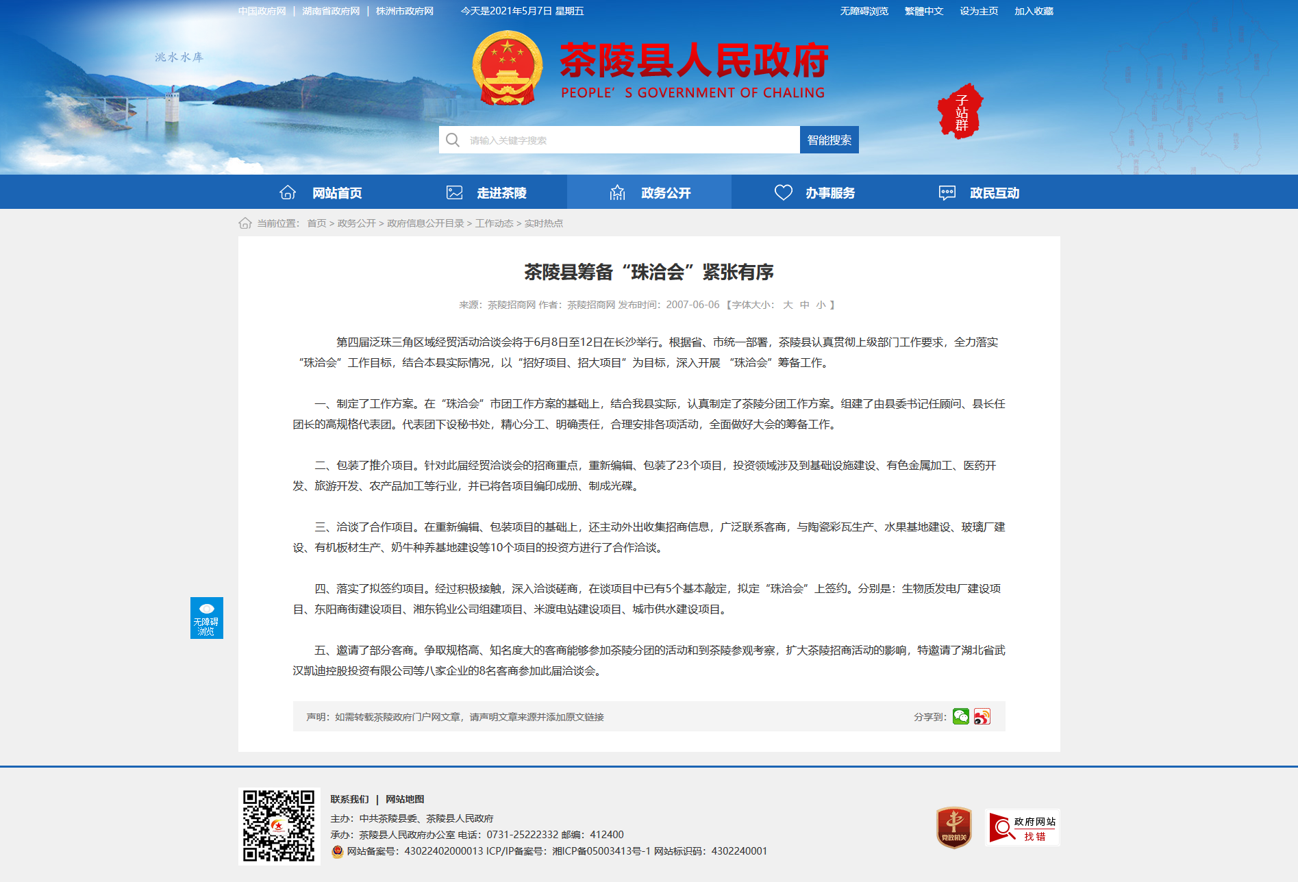 一、制定了工作方案。在“珠洽会”市团工作方案的基础上,结合我县实际,认真制定了茶陵分团工作方案。组建了由县委书记任顾问、县长任团长的高规格代表团。代表团下设秘书处,精心分工、明确责任,合理安排各项活动,全面做好大会的筹备工作。