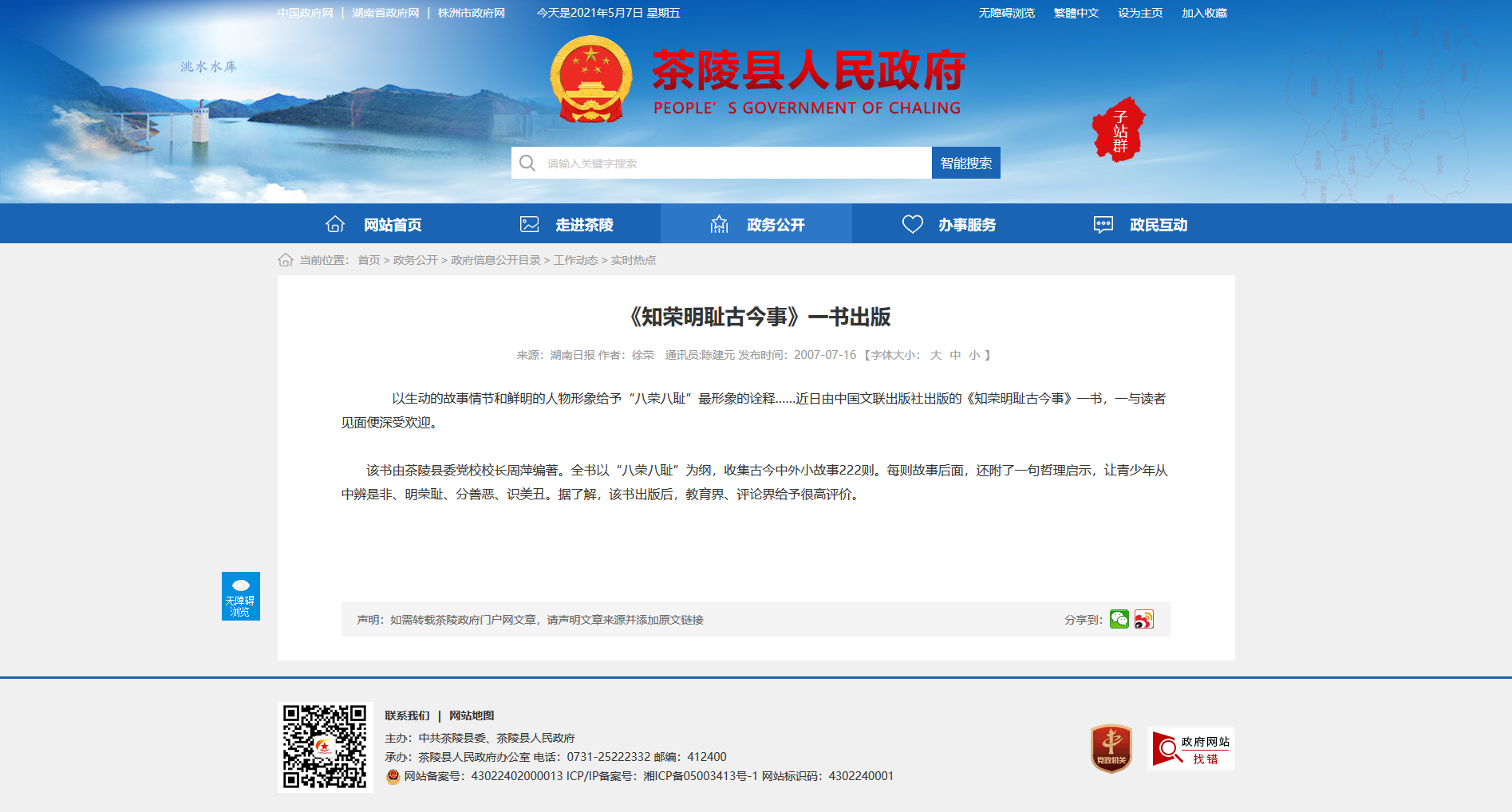 时间:2007-07-16 19:25:00 来源: 茶陵县人民政府 来源截图