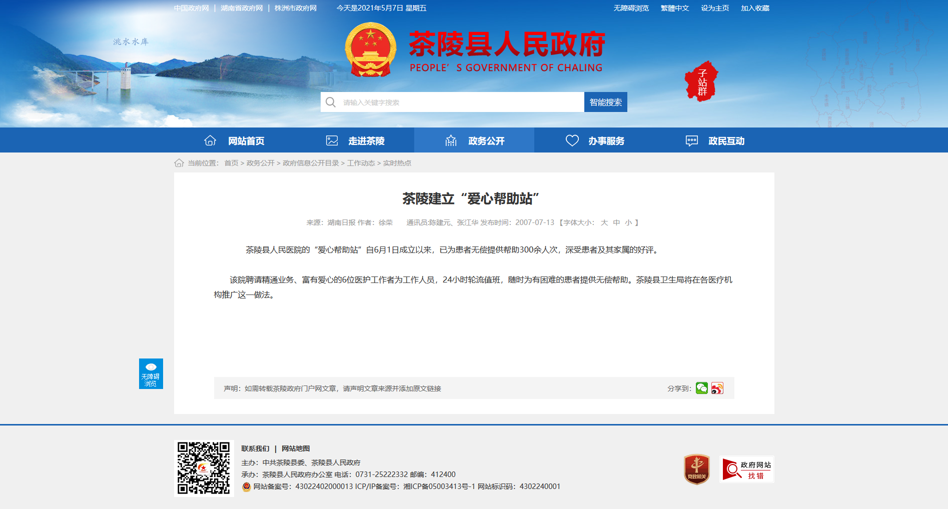 时间:2007-07-13 12:05:00 来源: 茶陵县人民政府 来源截图