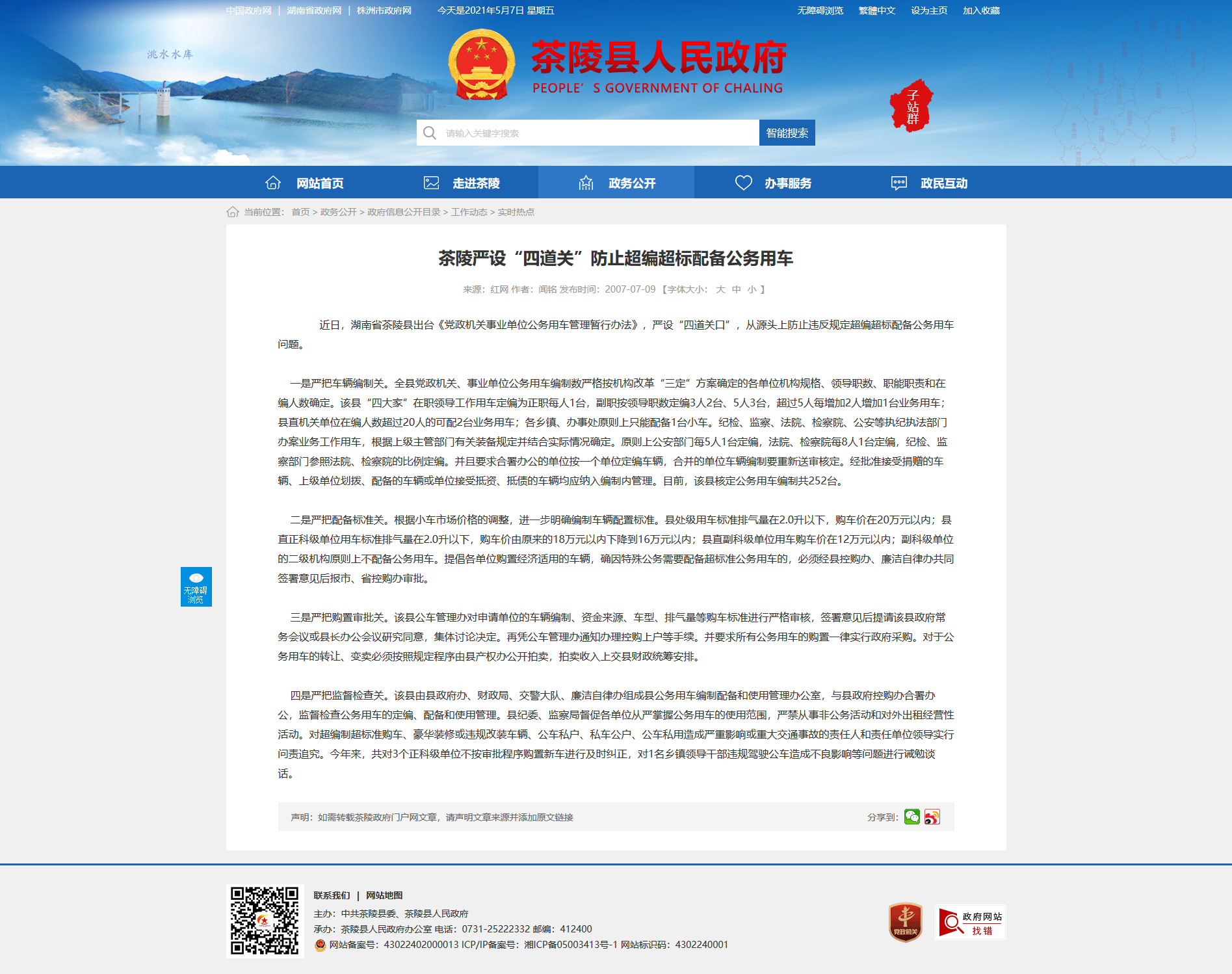近日,湖南省茶陵县出台《党政机关事业单位公务用车管理暂行办法》,严设“四道关口”,从源头上防止违反规定超编超标配备公务用车问题。