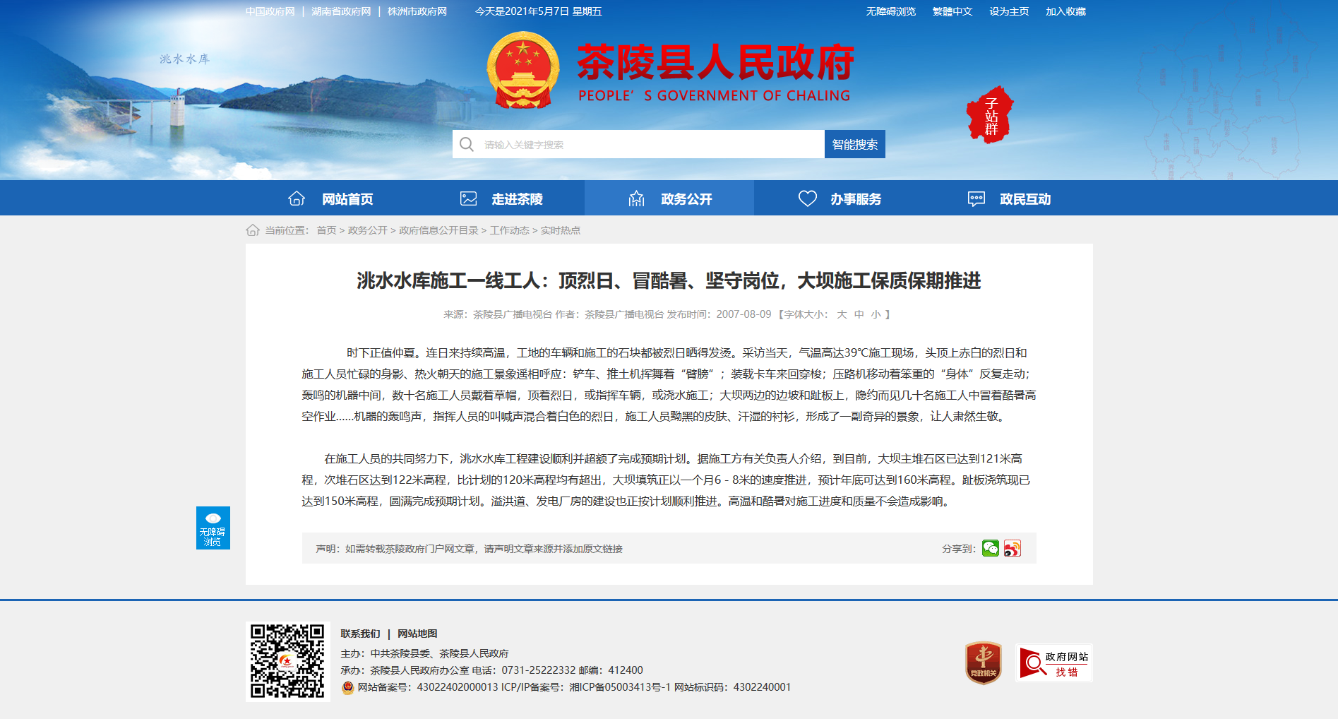 时下正值仲夏。连日来持续高温,工地的车辆和施工的石块都被烈日晒得发烫。采访当天,气温高达39℃施工现场,头顶上赤白的烈日和施工人员忙碌的身影、热火朝天的施工景象遥相呼应:铲车、推土机挥舞着“臂膀”;装载卡车来回穿梭;压路机移动着笨重的“身体”反复走动;轰鸣的机器中间,数十名施工人员戴着草帽,顶着烈日,或指挥车辆,或浇水施工;大坝两边的边坡和趾板上,隐约而见几十名施工人中冒着酷暑高空作业……机器的轰鸣声,指挥人员的叫喊声混合着白色的烈日,施工人员黝黑的皮肤、汗湿的衬衫,形成了一副奇异的景象,让人肃然生敬。