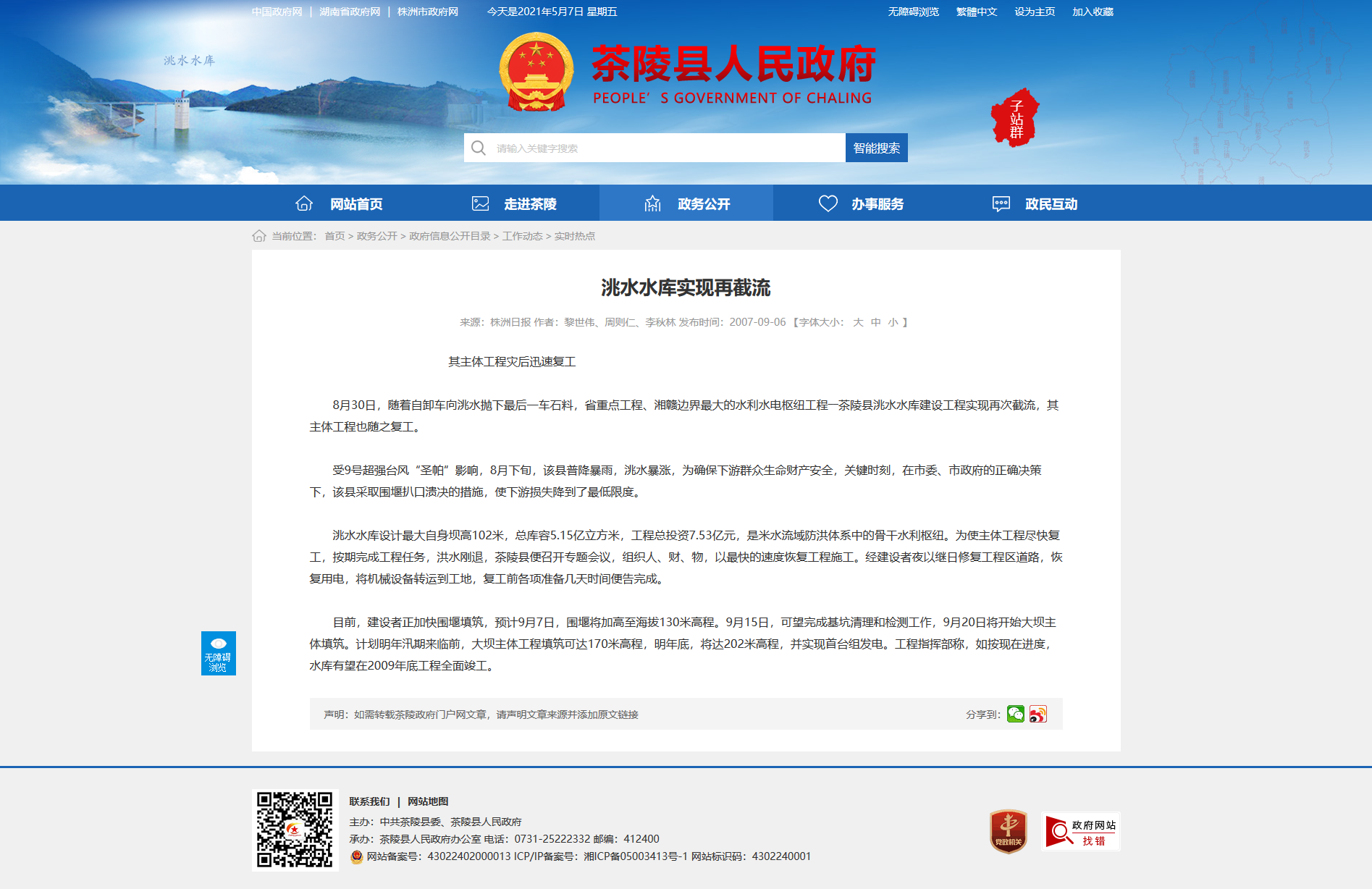 洮水水库设计最大自身坝高102米,总库容5.15亿立方米,工程总投资7.53亿元,是米水流域防洪体系中的骨干水利枢纽。为使主体工程尽快复工,按期完成工程任务,洪水刚退,茶陵县便召开专题会议,组织人、财、物,以最快的速度恢复工程施工。经建设者夜以继日修复工程区道路,恢复用电,将机械设备转运到工地,复工前各项准备几天时间便告完成。