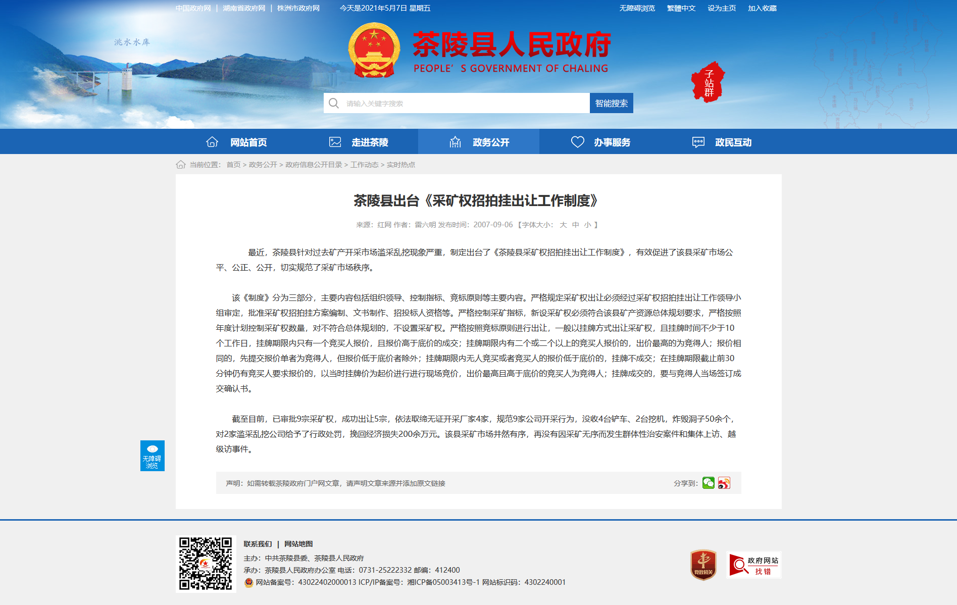 最近,茶陵县针对过去矿产开采市场滥采乱挖现象严重,制定出台了《茶陵县采矿权招拍挂出让工作制度》,有效促进了该县采矿市场公平、公正、公开,切实规范了采矿市场秩序。