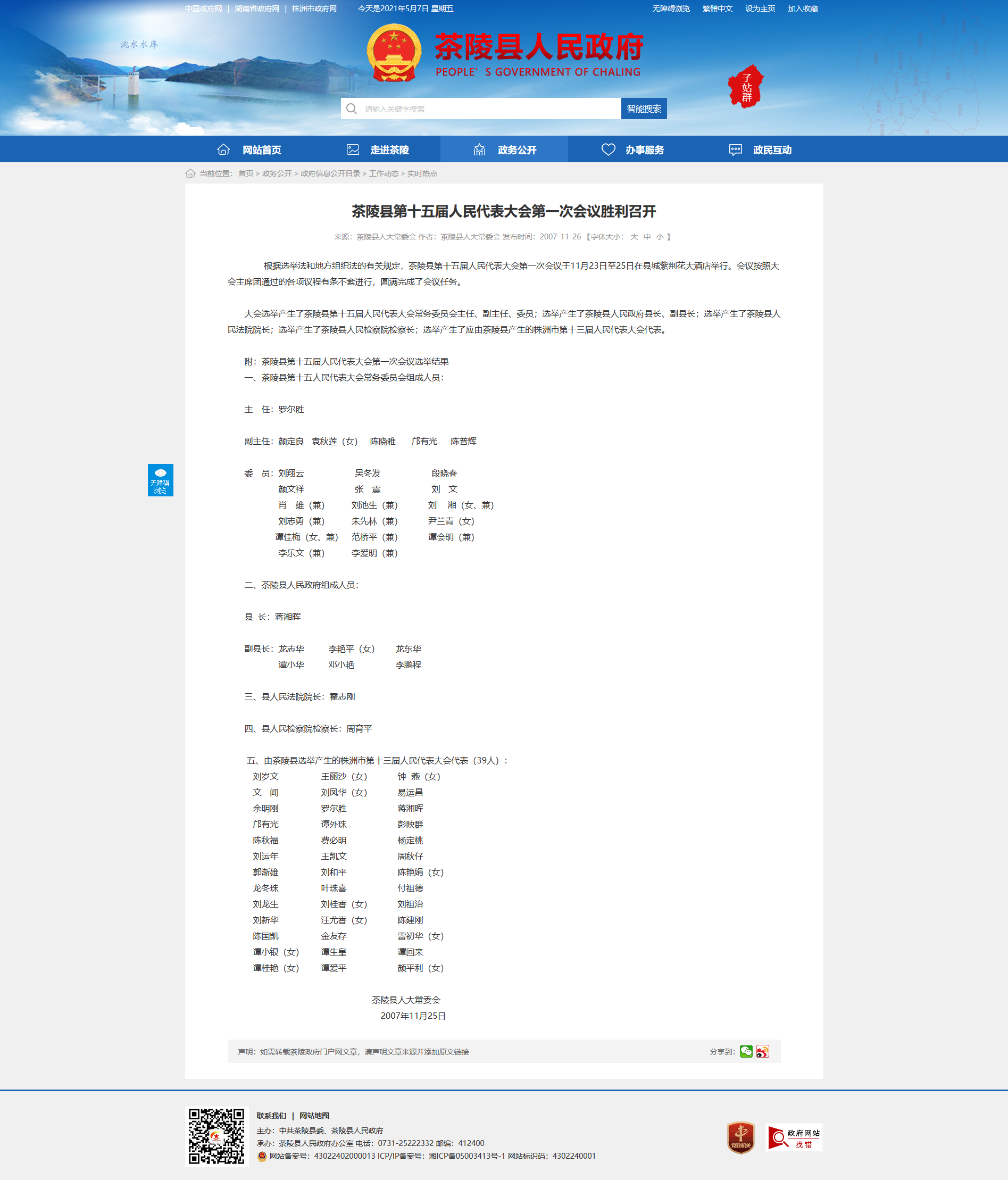 附:茶陵县第十五届人民代表大会第一次会议选举结果