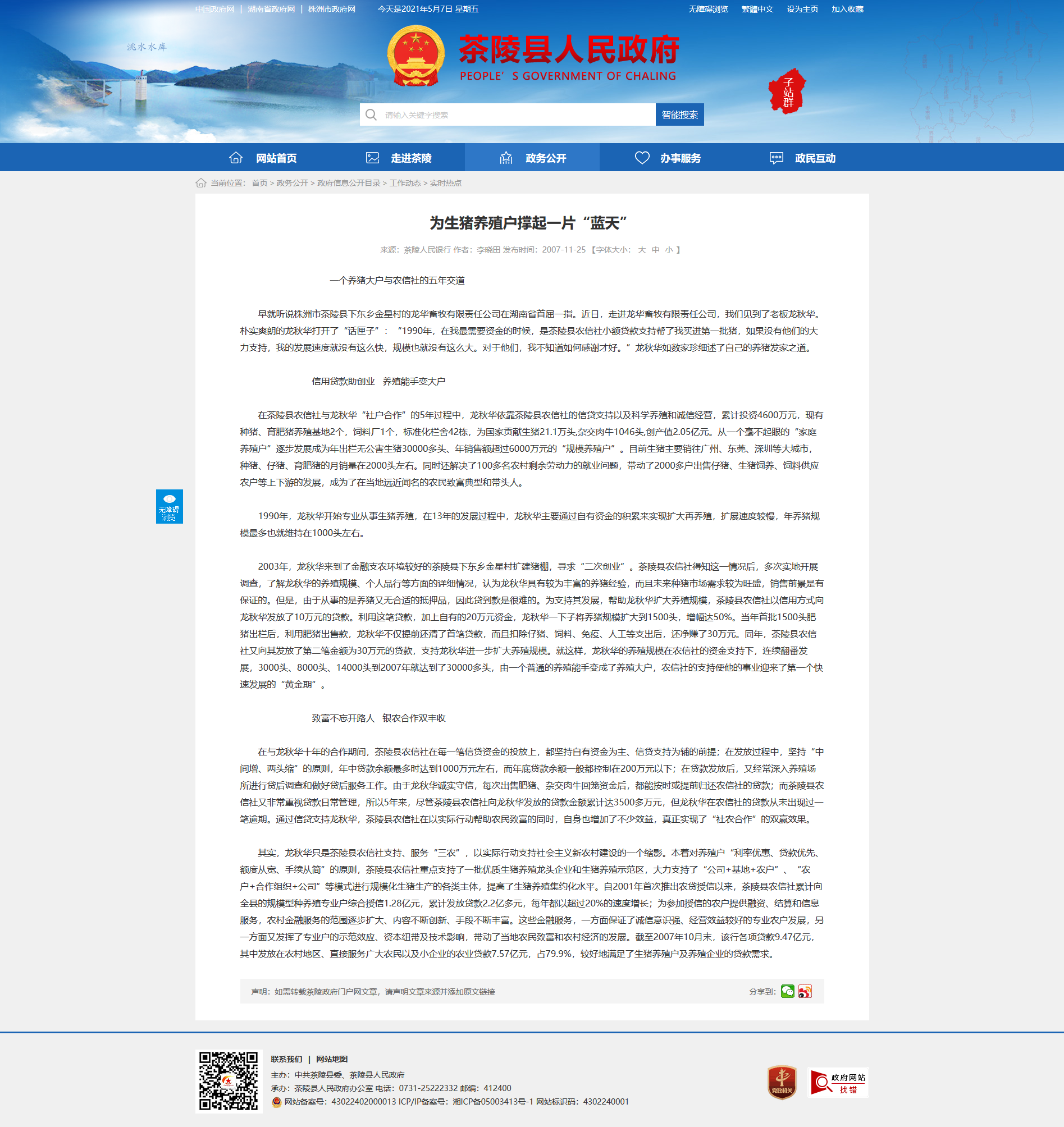 其实,龙秋华只是茶陵县农信社支持、服务“三农”,以实际行动支持社会主义新农村建设的一个缩影。本着对养殖户“利率优惠、贷款优先、额度从宽、手续从简”的原则,茶陵县农信社重点支持了一批优质生猪养殖龙头企业和生猪养殖示范区,大力支持了“公司 基地 农户”、“农户 合作组织 公司”等模式进行规模化生猪生产的各类主体,提高了生猪养殖集约化水平。自2001年首次推出农贷授信以来,茶陵县农信社累计向全县的规模型种养殖专业户综合授信1.28亿元,累计发放贷款2.2亿多元,每年都以超过20%的速度增长;为参加授信的农户提供融资、结算和信息服务,农村金融服务的范围逐步扩大、内容不断创新、手段不断丰富。这些金融服务,一方面保证了诚信意识强、经营效益较好的专业农户发展,另一方面又发挥了专业户的示范效应、资本纽带及技术影响,带动了当地农民致富和农村经济的发展。截至2007年10月末,该行各项贷款9.47亿元,其中发放在农村地区、直接服务广大农民以及小企业的农业贷款7.57亿元,占79.9%,较好地满足了生猪养殖户及养殖企业的贷款需求。