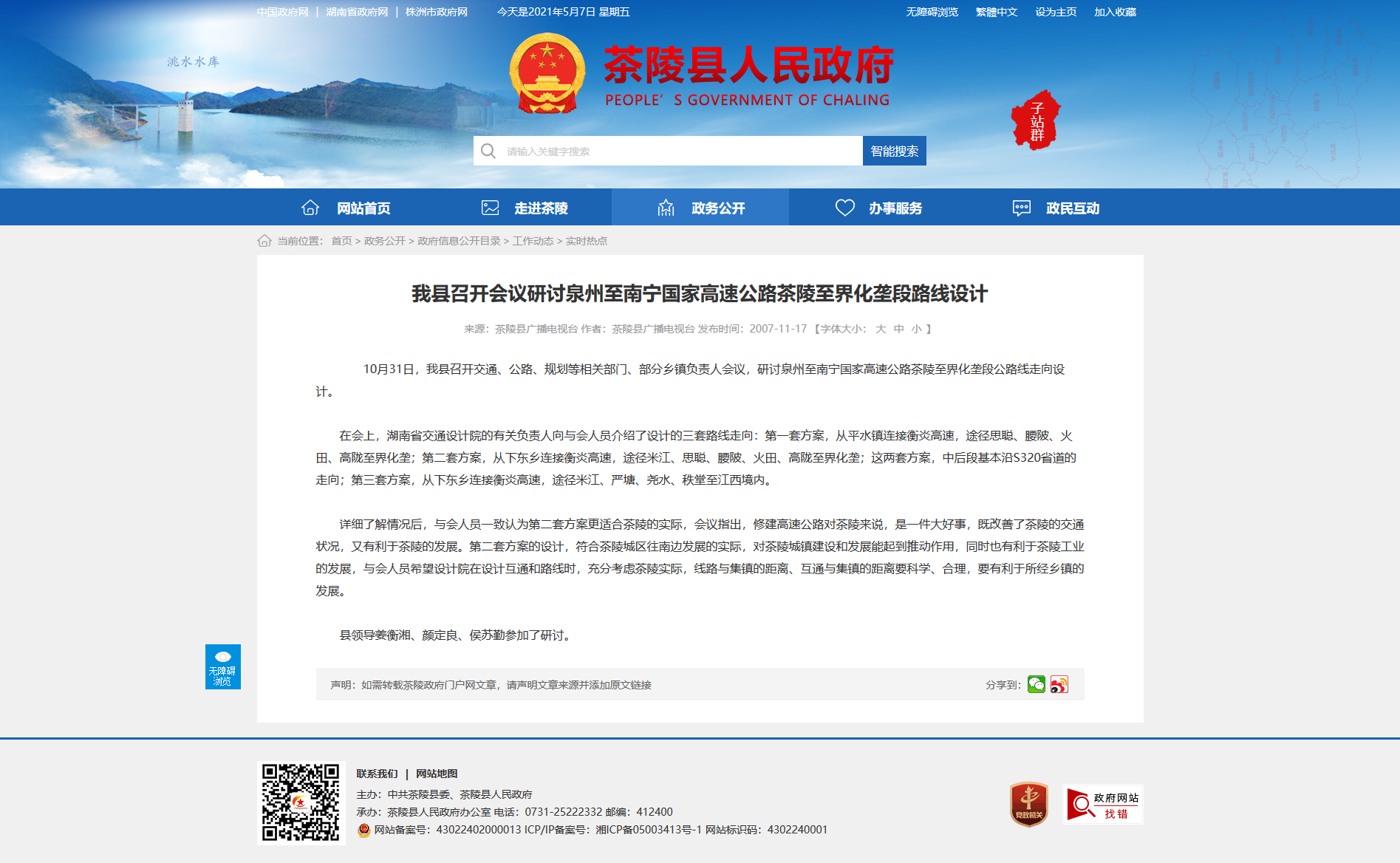 10月31日,我县召开交通、公路、规划等相关部门、部分乡镇负责人会议,研讨泉州至南宁国家高速公路茶陵至界化垄段公路线走向设计。