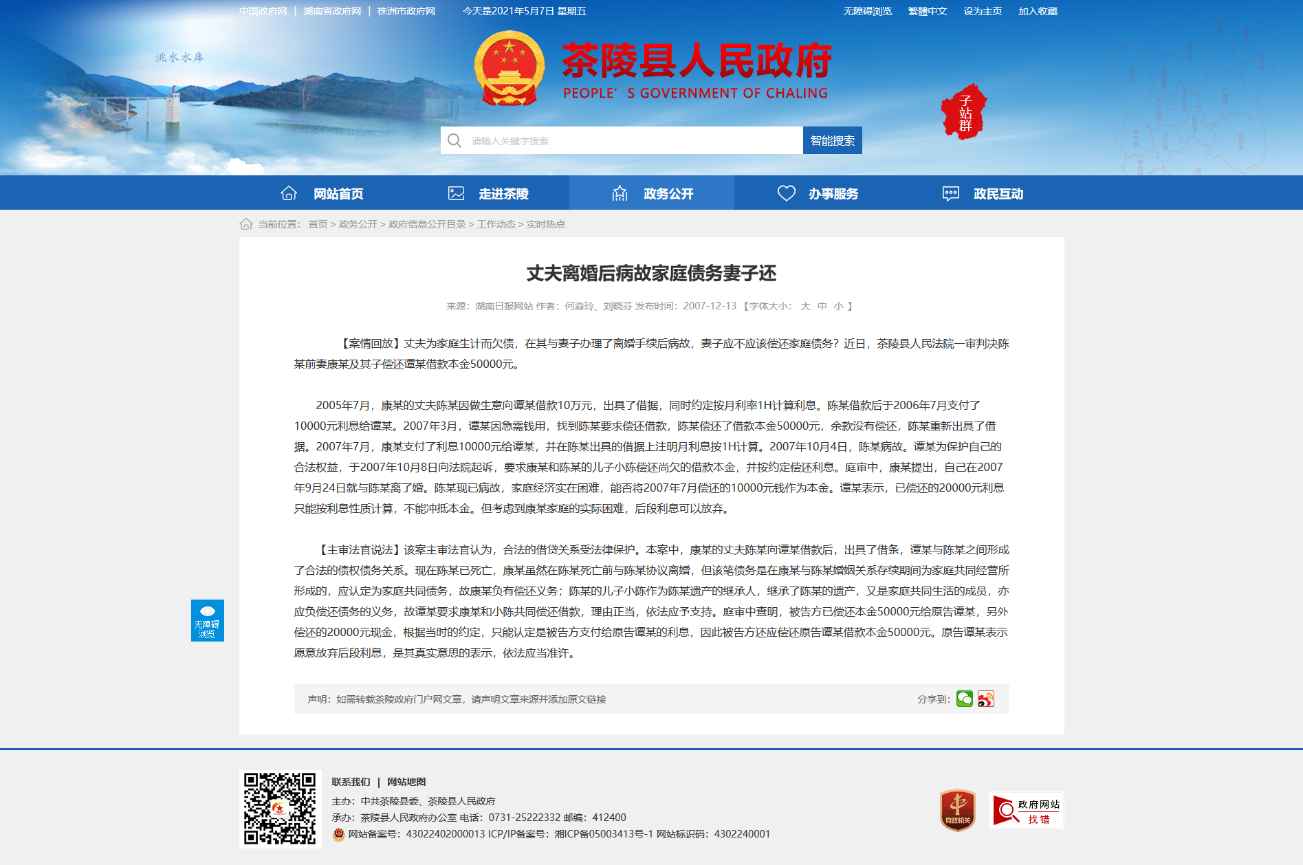 【案情回放】丈夫为家庭生计而欠债,在其与妻子办理了离婚手续后病故,妻子应不应该偿还家庭债务?近日,茶陵县人民法院一审判决陈某前妻康某及其子偿还谭某借款本金50000元。