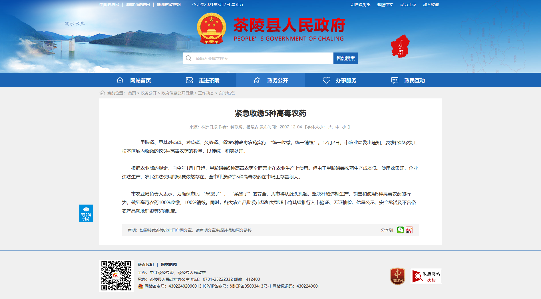 甲胺磷、甲基对硫磷、对硫磷、久效磷、磷铵5种高毒农药实行 “统一收缴,统一销毁”。12月2日,市农业局发出通知,要求各地尽快上报本区域内收缴的这5种高毒农药的数量,以便统一销毁处理。