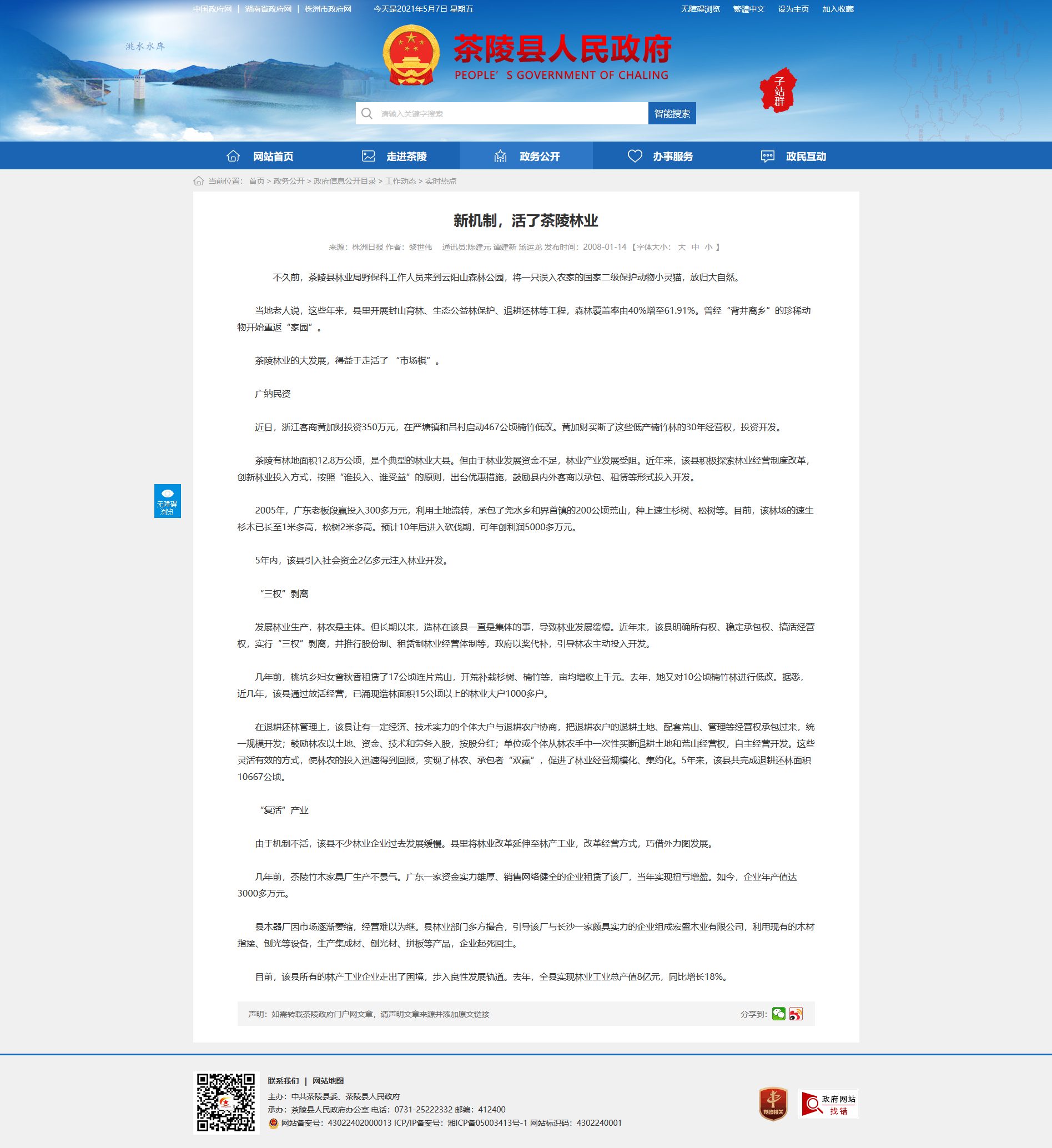 茶陵有林地面积12.8万公顷,是个典型的林业大县。但由于林业发展资金不足,林业产业发展受阻。近年来,该县积极探索林业经营制度改革,创新林业投入方式,按照“谁投入、谁受益”的原则,出台优惠措施,鼓励县内外客商以承包、租赁等形式投入开发。