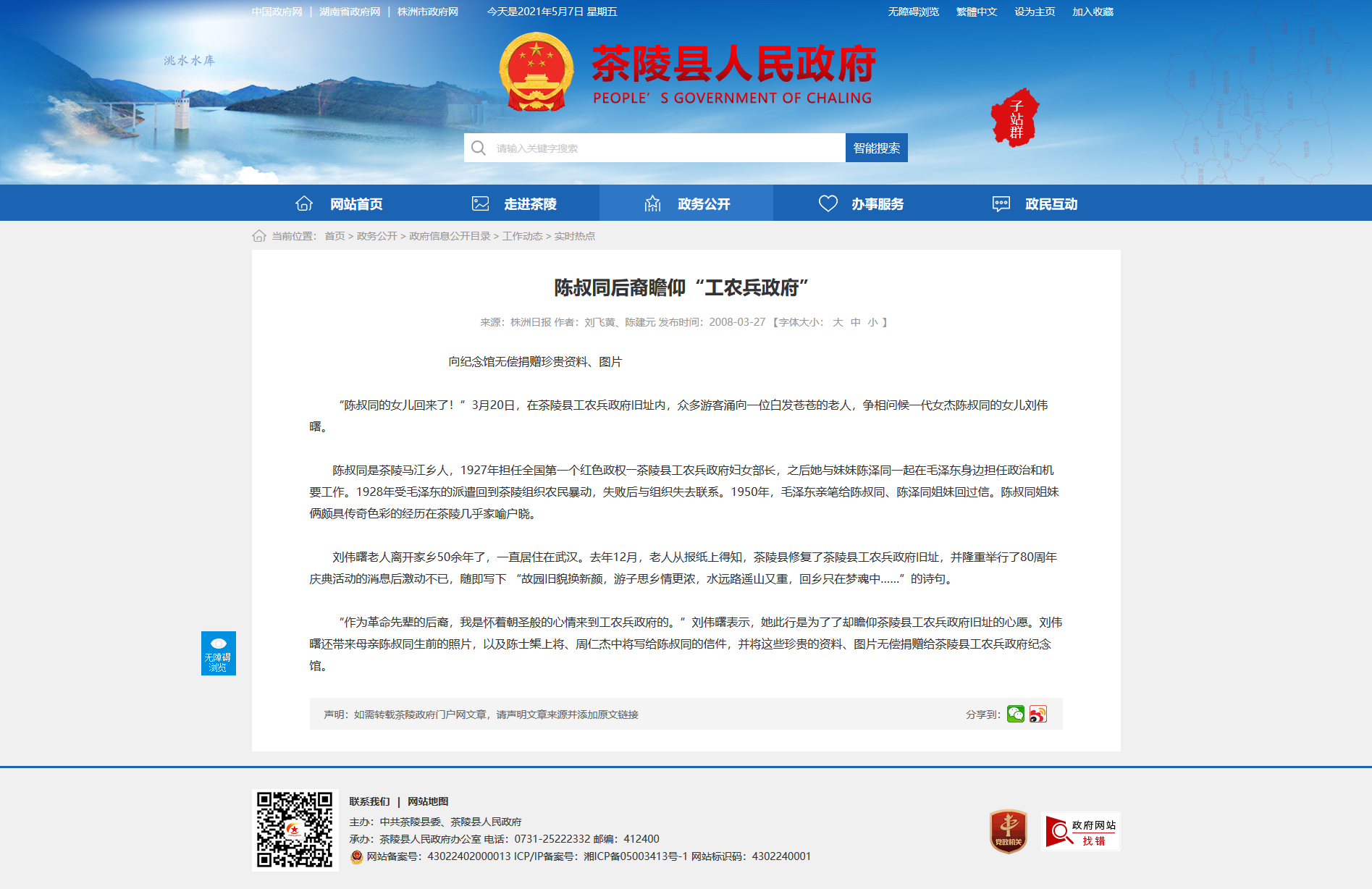 “陈叔同的女儿回来了!”3月20日,在茶陵县工农兵政府旧址内,众多游客涌向一位白发苍苍的老人,争相问候一代女杰陈叔同的女儿刘伟曙。