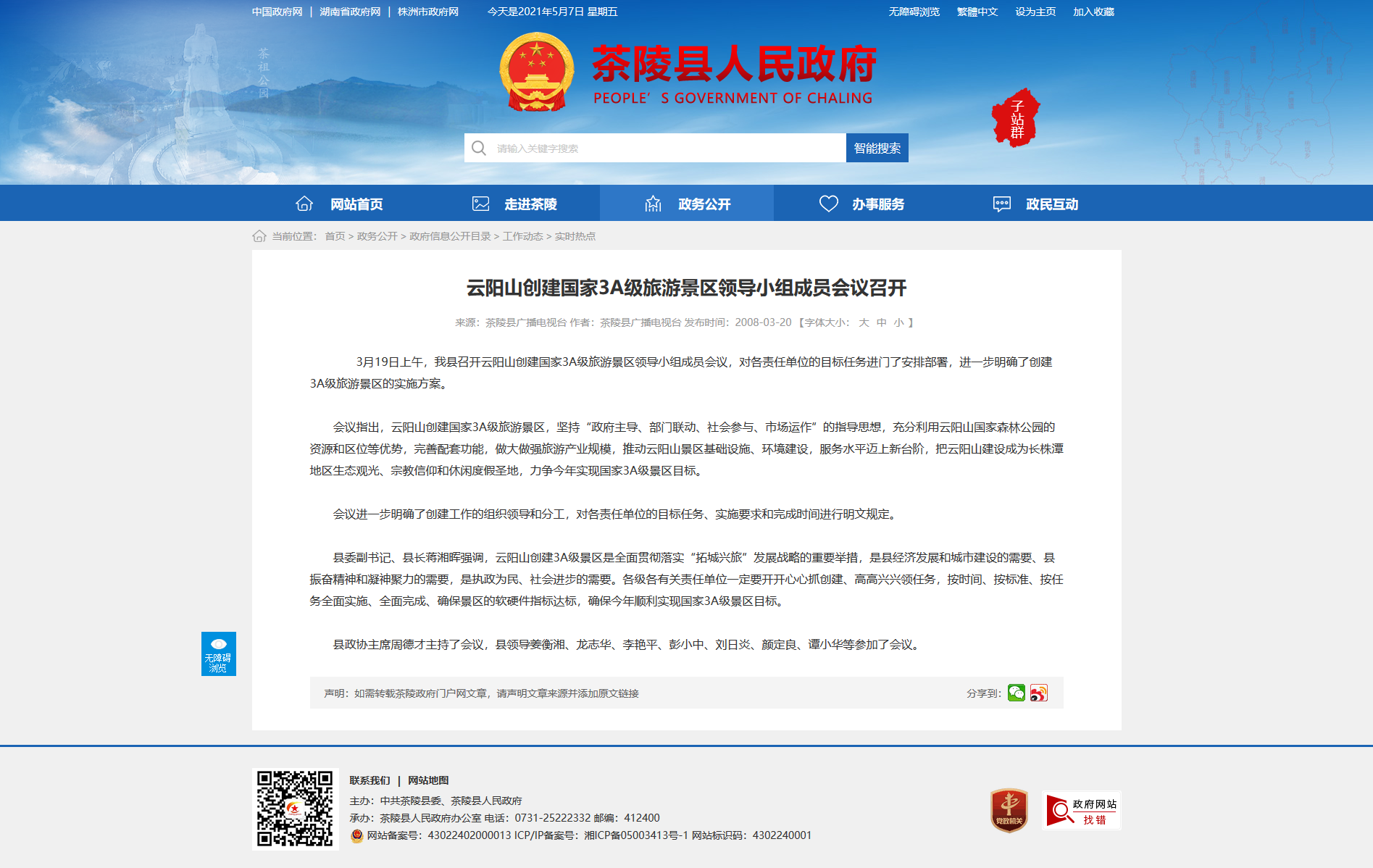 会议指出,云阳山创建国家3A级旅游景区,坚持“政府主导、部门联动、社会参与、市场运作”的指导思想,充分利用云阳山国家森林公园的资源和区位等优势,完善配套功能,做大做强旅游产业规模,推动云阳山景区基础设施、环境建设,服务水平迈上新台阶,把云阳山建设成为长株潭地区生态观光、宗教信仰和休闲度假圣地,力争今年实现国家3A级景区目标。