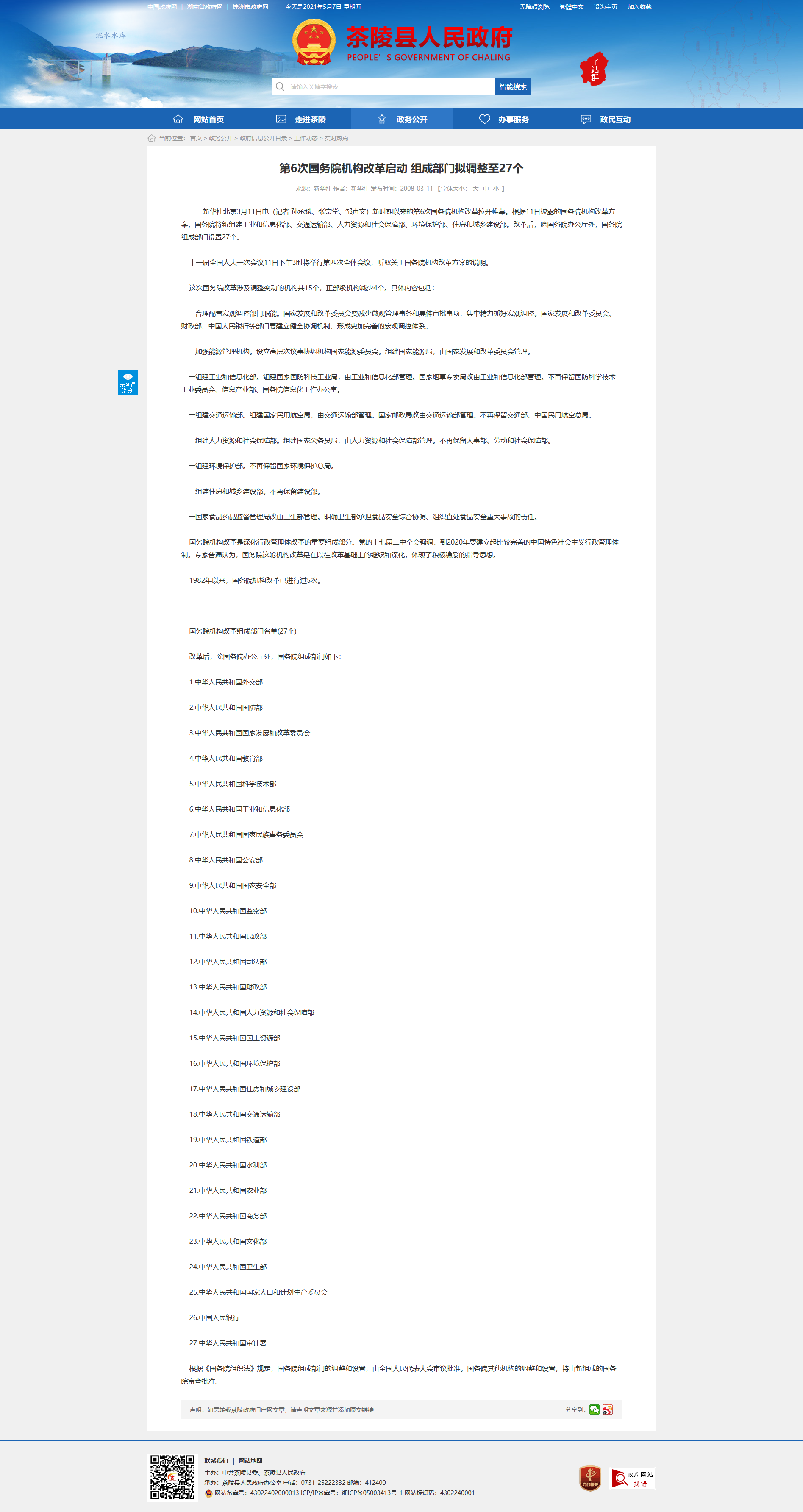 国务院机构改革组成部门名单(27个)