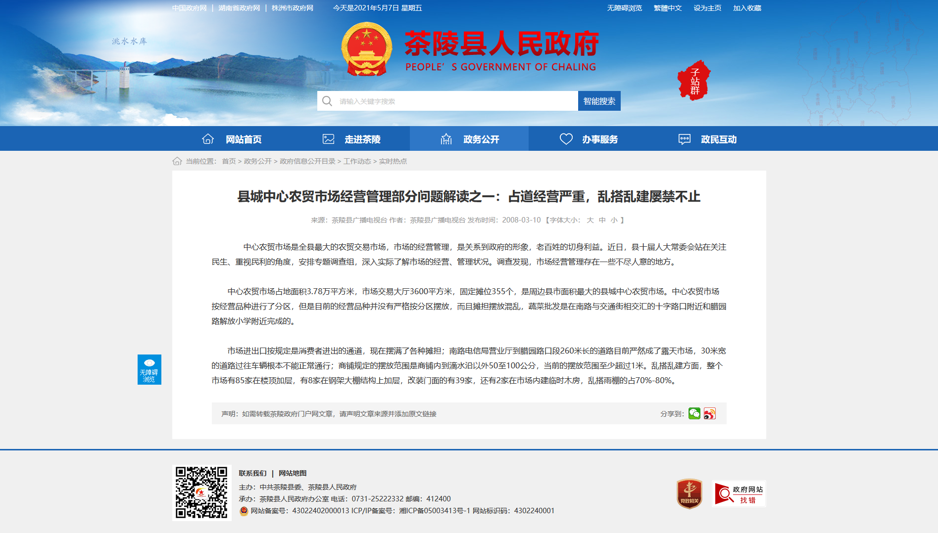 市场进出口按规定是消费者进出的通道,现在摆满了各种摊担;南路电信局营业厅到腊园路口段260米长的道路目前严然成了露天市场,30米宽的道路过往车辆根本不能正常通行;商铺规定的摆放范围是商铺内到滴水沿以外50至100公分,当前的摆放范围至少超过1米。乱搭乱建方面,整个市场有85家在楼顶加层,有8家在钢架大棚结构上加层,改装门面的有39家,还有2家在市场内建临时木房,乱搭雨棚的占70%-80%。