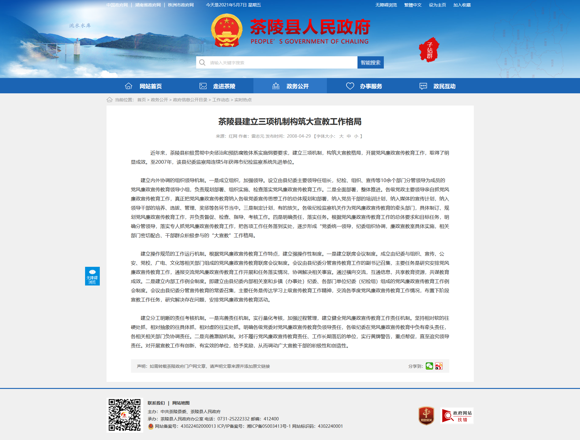 近年来,茶陵县积极贯彻中央惩治和预防腐败体系实施纲要要求,建立三项机制,构筑大宣教格局,开展党风廉政宣传教育工作,取得了明显成效。至2007年,该县纪委监察局连续5年获得市纪检监察系统先进单位。