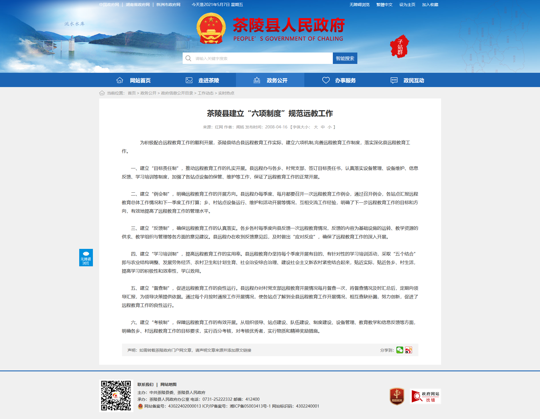 为积极配合远程教育工作的顺利开展,茶陵县结合县远程教育工作实际,建立六项机制,完善远程教育工作制度,落实深化县远程教育工作。