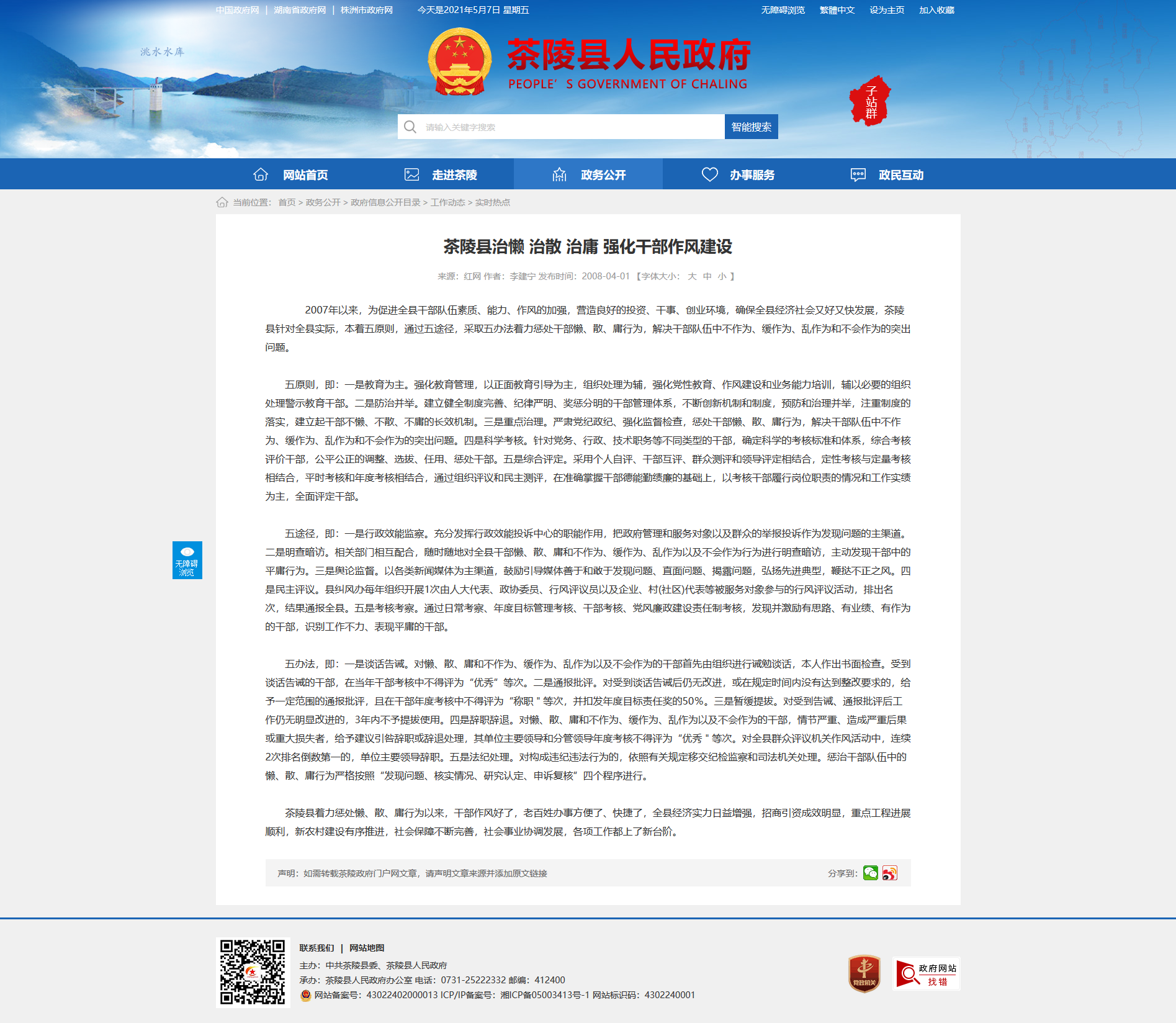 2007年以来,为促进全县干部队伍素质、能力、作风的加强,营造良好的投资、干事、创业环境,确保全县经济社会又好又快发展,茶陵县针对全县实际,本着五原则,通过五途径,采取五办法着力惩处干部懒、散、庸行为,解决干部队伍中不作为、缓作为、乱作为和不会作为的突出问题。