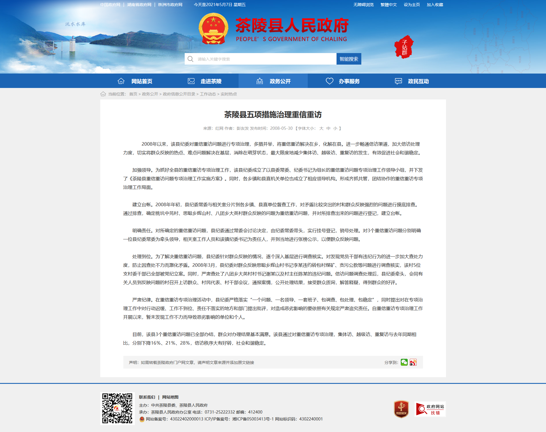 加强领导。为抓好全县的重信重访专项治理工作,该县纪委成立了以县委常委、纪委书记为组长的重信重访问题专项治理工作领导小组,并下发了《茶陵县重信重访问题专项治理工作实施方案》。同时,各乡镇和县直机关单位也成立了相应领导机构。形成齐抓共管,团结协作的重信重访专项治理工作局面。