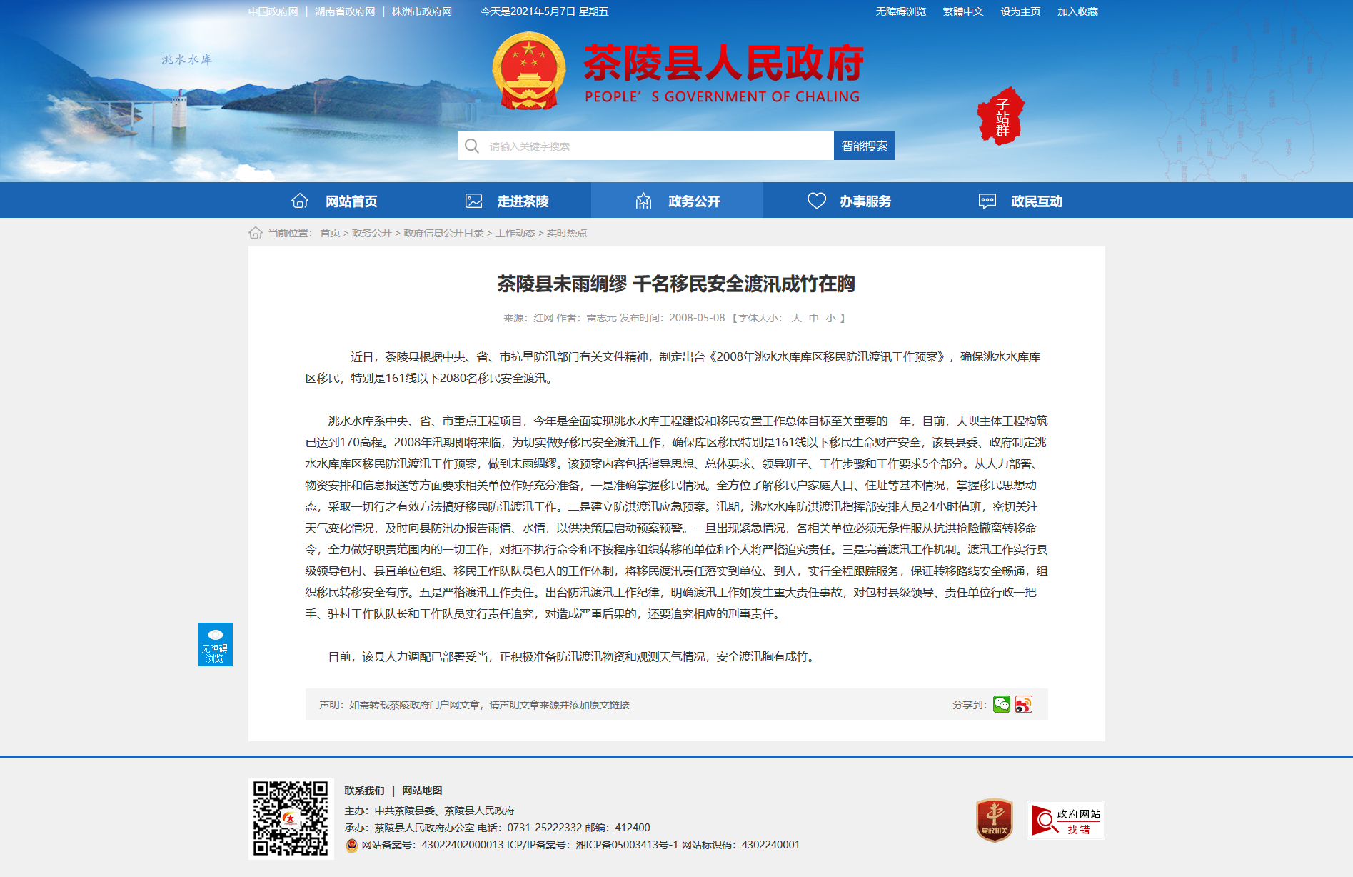 近日,茶陵县根据中央、省、市抗旱防汛部门有关文件精神,制定出台《2008年洮水水库库区移民防汛渡讯工作预案》,确保洮水水库库区移民,特别是161线以下2080名移民安全渡汛。