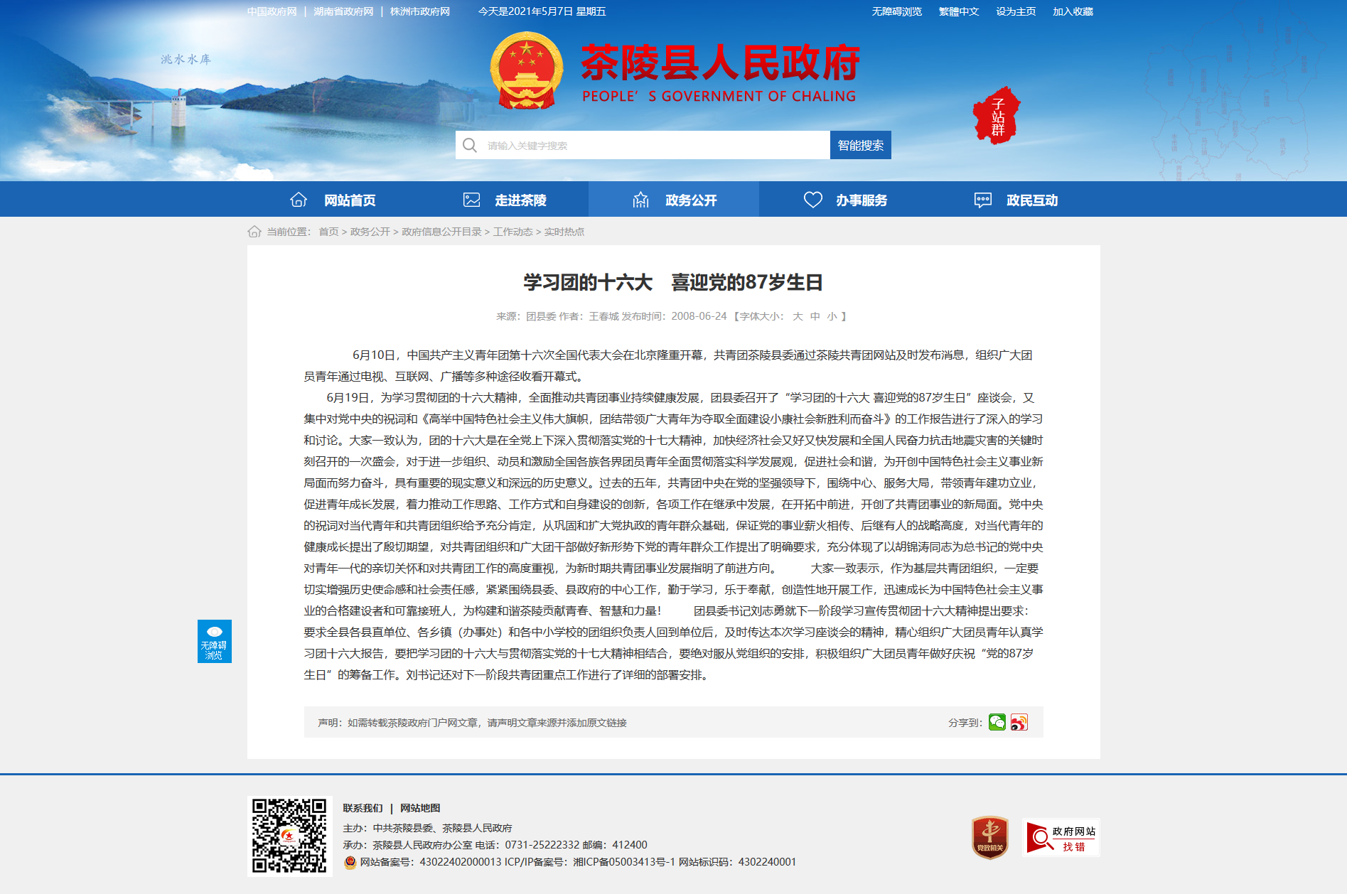 6月10日,中国共产主义青年团第十六次全国代表大会在北京隆重开幕,共青团茶陵县委通过茶陵共青团网站及时发布消息,组织广大团员青年通过电视、互联网、广播等多种途径收看开幕式。