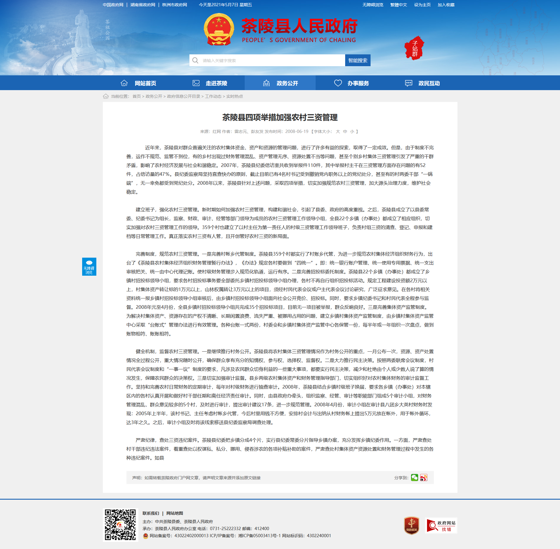 建立班子,强化农村三资管理。新时期如何加强农村三资管理,构建和谐社会,引起了县委、政府的高度重视。之后,茶陵县成立了以县委常委、纪委书记为组长,监察、财政、审计、经管等部门领导为成员的农村三资管理工作领导小组,全县22个乡镇(办事处)都成立了相应组织,切实加强对农村三资管理工作的领导。359个村也建立了以村主任为第一责任人的村级三资管理工作领导班子,负责村组三资的清查、登记、申报和建档等日常管理工作。真正落实农村三资有人管,且开创管好农村三资的新局面。