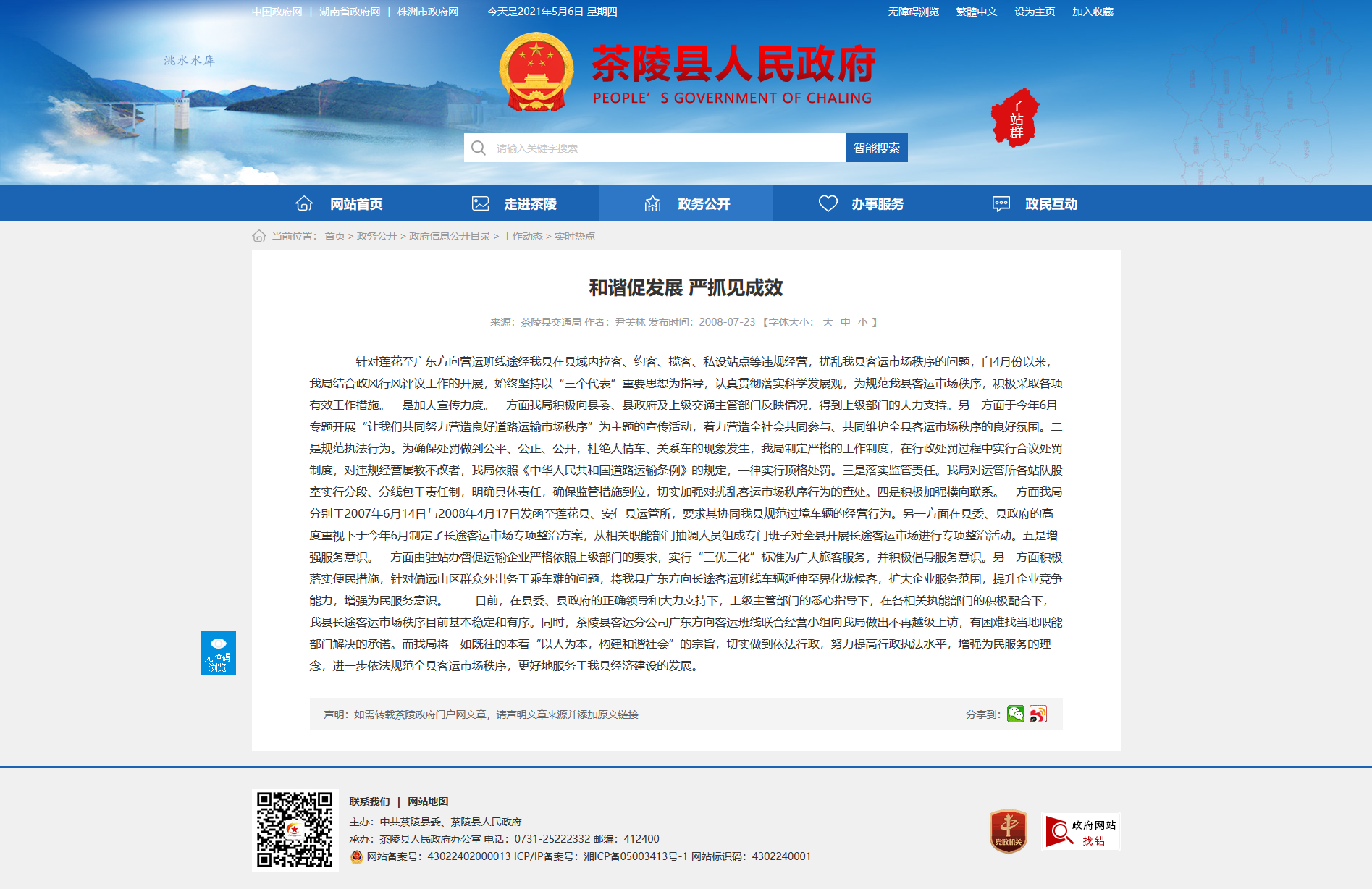 针对莲花至广东方向营运班线途经我县在县域内拉客、约客、揽客、私设站点等违规经营,扰乱我县客运市场秩序的问题,自4月份以来,我局结合政风行风评议工作的开展,始终坚持以“三个代表”重要思想为指导,认真贯彻落实科学发展观,为规范我县客运市场秩序,积极采取各项有效工作措施。一是加大宣传力度。一方面我局积极向县委、县政府及上级交通主管部门反映情况,得到上级部门的大力支持。另一方面于今年6月专题开展“让我们共同努力营造良好道路运输市场秩序”为主题的宣传活动,着力营造全社会共同参与、共同维护全县客运市场秩序的良好氛围。二是规范执法行为。为确保处罚做到公平、公正、公开,杜绝人情车、关系车的现象发生,我局制定严格的工作制度,在行政处罚过程中实行合议处罚制度,对违规经营屡教不改者,我局依照《中华人民共和国道路运输条例》的规定,一律实行顶格处罚。三是落实监管责任。我局对运管所各站队股室实行分段、分线包干责任制,明确具体责任,确保监管措施到位,切实加强对扰乱客运市场秩序行为的查处。四是积极加强横向联系。一方面我局分别于2007年6月14日与2008年4月17日发函至莲花县、安仁县运管所,要求其协同我县规范过境车辆的经营行为。另一方面在县委、县政府的高度重视下于今年6月制定了长途客运市场专项整治方案,从相关职能部门抽调人员组成专门班子对全县开展长途客运市场进行专项整治活动。五是增强服务意识。一方面由驻站办督促运输企业严格依照上级部门的要求,实行“三优三化”标准为广大旅客服务,并积极倡导服务意识。另一方面积极落实便民措施,针对偏远山区群众外出务工乘车难的问题,将我县广东方向长途客运班线车辆延伸至界化垅候客,扩大企业服务范围,提升企业竞争能力,增强为民服务意识。 目前,在县委、县政府的正确领导和大力支持下,上级主管部门的悉心指导下,在各相关执能部门的积极配合下,我县长途客运市场秩序目前基本稳定和有序。同时,茶陵县客运分公司广东方向客运班线联合经营小组向我局做出不再越级上访,有困难找当地职能部门解决的承诺。而我局将一如既往的本着“以人为本,构建和谐社会”的宗旨,切实做到依法行政,努力提高行政执法水平,增强为民服务的理念,进一步依法规范全县客运市场秩序,更好地服务于我县经济建设的发展。