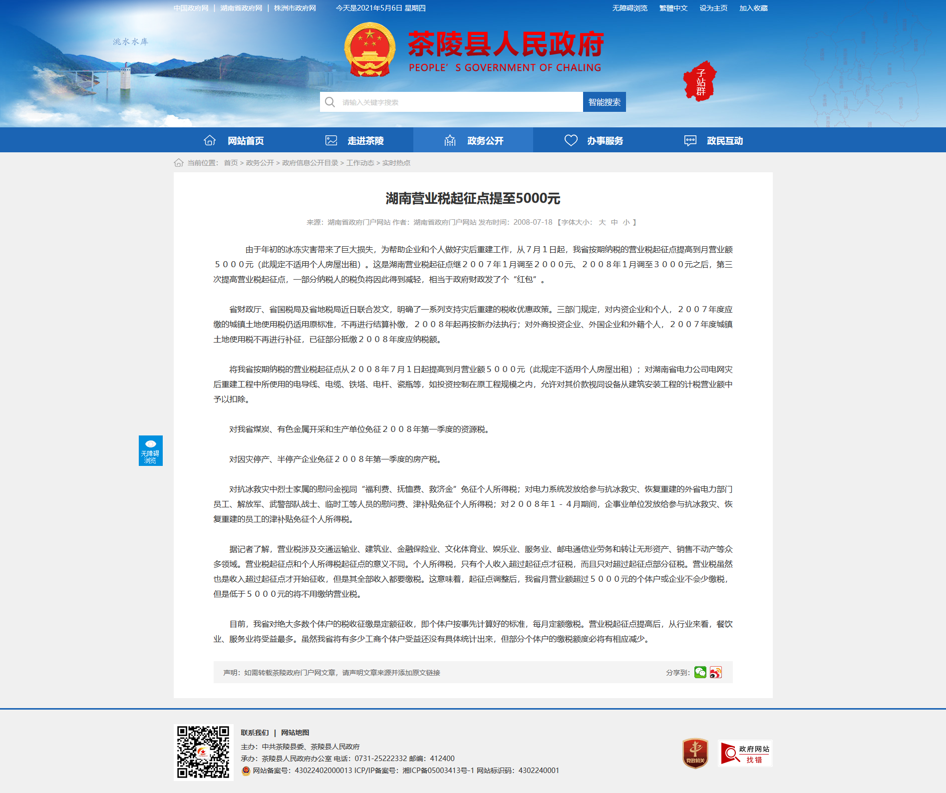 由于年初的冰冻灾害带来了巨大损失,为帮助企业和个人做好灾后重建工作,从7月1日起,我省按期纳税的营业税起征点提高到月营业额5000元(此规定不适用个人房屋出租)。这是湖南营业税起征点继2007年1月调至2000元、2008年1月调至3000元之后,第三次提高营业税起征点,一部分纳税人的税负将因此得到减轻,相当于政府财政发了个“红包”。