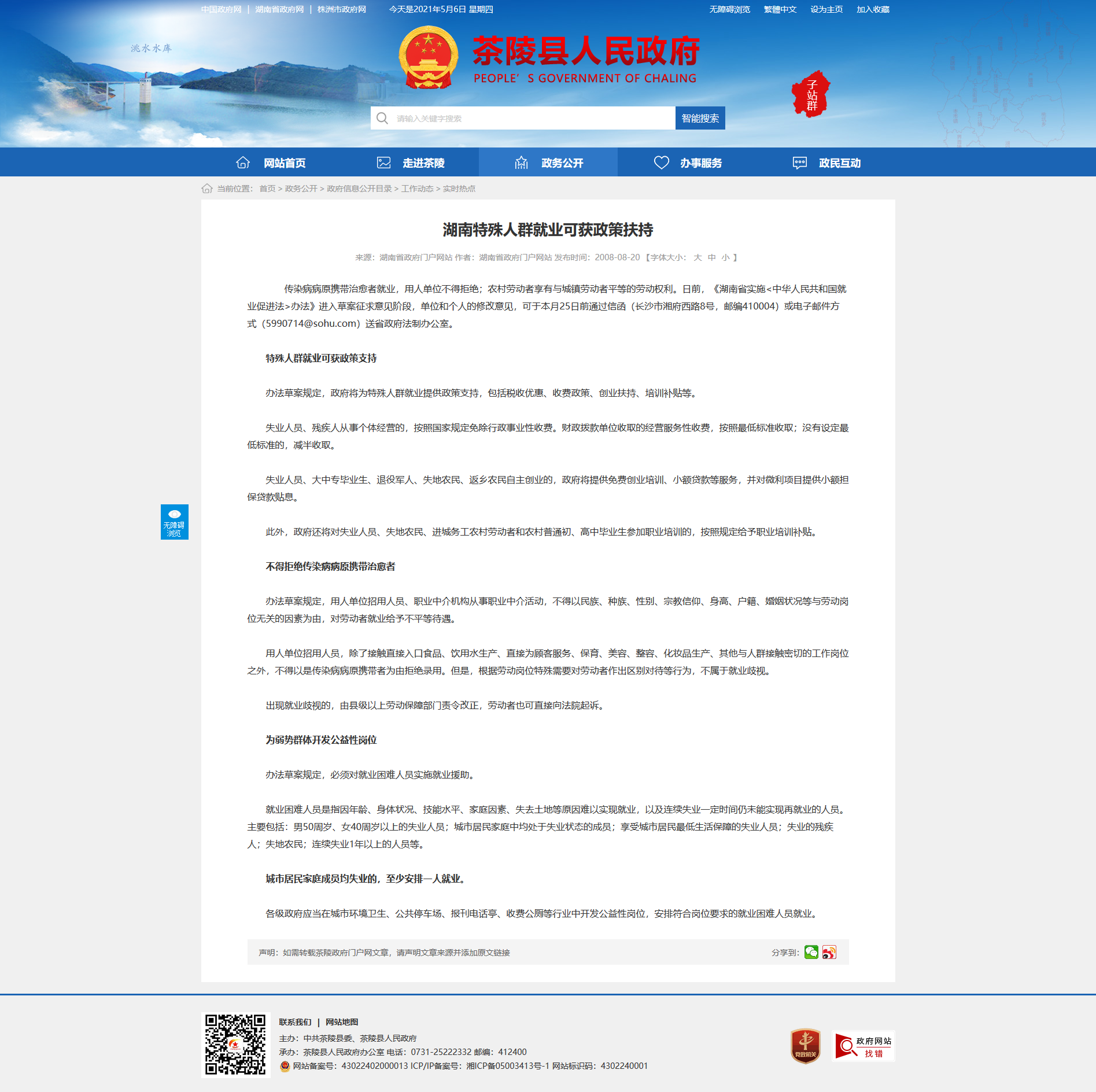 传染病病原携带治愈者就业,用人单位不得拒绝;农村劳动者享有与城镇劳动者平等的劳动权利。日前,《湖南省实施<中华人民共和国就业促进法>办法》进入草案征求意见阶段,单位和个人的修改意见,可于本月25日前通过信函(长沙市湘府西路8号,邮编410004)或电子邮件方式(5990714@sohu.com)送省政府法制办公室。