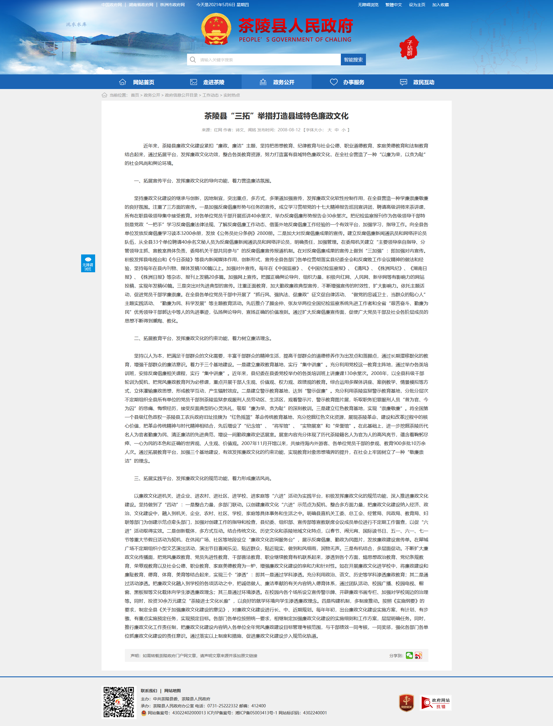 近年来,茶陵县廉政文化建设紧扣“廉政、廉洁”主题,坚持把思想教育、纪律教育与社会公德、职业道德教育、家庭美德教育和法制教育结合起来,通过拓展平台,发挥廉政文化功效,整合各类教育资源,努力打造富有县域特色廉政文化,在全社会营造了一种“以廉为荣,以贪为耻”的社会风尚和舆论环境。