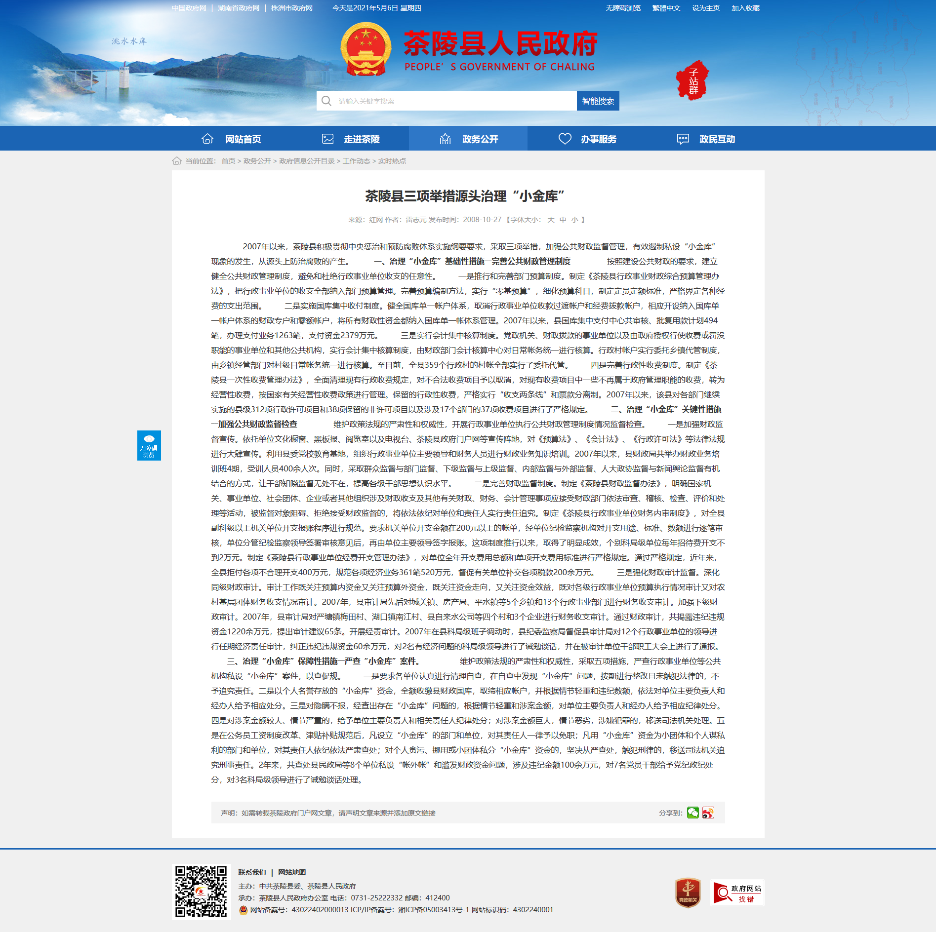 2007年以来,茶陵县积极贯彻中央惩治和预防腐败体系实施纲要要求,采取三项举措,加强公共财政监督管理,有效遏制私设“小金库”现象的发生,从源头上防治腐败的产生。 一、治理“小金库”基础性措施――完善公共财政管理制度 按照建设公共财政的要求,建立健全公共财政管理制度,避免和杜绝行政事业单位收支的任意性。 一是推行和完善部门预算制度。制定《茶陵县行政事业财政综合预算管理办法》,把行政事业单位的收支全部纳入部门预算管理。完善预算编制方法,实行“零基预算”,细化预算科目,制定定员定额标准,严格界定各种经费的支出范围。 二是实施国库集中收付制度。健全国库单一帐户体系,取消行政事业单位收款过渡帐户和经费拨款帐户,相应开设纳入国库单一帐户体系的财政专户和零额帐户,将所有财政性资金都纳入国库单一帐体系管理。2007年以来,县国库集中支付中心共审核、批复用款计划494笔,办理支付业务1263笔,支付资金2379万元。 三是实行会计集中核算制度。党政机关、财政拨款的事业单位以及由政府授权行使收费或罚没职能的事业单位和其他公共机构,实行会计集中核算制度,由财政部门会计核算中心对日常帐务统一进行核算。行政村帐户实行委托乡镇代管制度,由乡镇经管部门对村级日常帐务统一进行核算。至目前,全县359个行政村的村帐全部实行了委托代管。 四是完善行政性收费制度。制定《茶陵县一次性收费管理办法》,全面清理现有行政收费规定,对不合法收费项目予以取消,对现有收费项目中一些不再属于政府管理职能的收费,转为经营性收费,按国家有关经营性收费政策进行管理。保留的行政性收费,严格实行“收支两条线”和票款分离制。2007年以来,该县对各部门继续实施的县级312项行政许可项目和38项保留的非许可项目以及涉及17个部门的37项收费项目进行了严格规定。 二、治理“小金库”关键性措施――加强公共财政监督检查 维护政策法规的严肃性和权威性,开展行政事业单位执行公共财政管理制度情况监督检查。 一是加强财政监督宣传。依托单位文化橱窗、黑板报、阅览室以及电视台、茶陵县政府门户网等宣传阵地,对《预算法》、《会计法》、《行政许可法》等法律法规进行大肆宣传。利用县委党校教育基地,组织行政事业单位主要领导和财务人员进行财政业务知识培训。2007年以来,县财政局共举办财政业务培训班4期,受训人员400余人次。同时,采取群众监督与部门监督、下级监督与上级监督、内部监督与外部监督、人大政协监督与新闻舆论监督有机结合的方式,让干部知晓监督无处不在,提高各级干部思想认识水平。 二是完善财政监督制度。制定《茶陵县财政监督办法》,明确国家机关、事业单位、社会团体、企业或者其他组织涉及财政收支及其他有关财政、财务、会计管理事项应接受财政部门依法审查、稽核、检查、评价和处理等活动,被监督对象阻碍、拒绝接受财政监督的,将依法依纪对单位和责任人实行责任追究。制定《茶陵县行政事业单位财务内审制度》,对全县副科级以上机关单位开支报账程序进行规范。要求机关单位开支金额在200元以上的帐单,经单位纪检监察机构对开支用途、标准、数额进行逐笔审核,单位分管纪检监察领导签署审核意见后,再由单位主要领导签字报账。这项制度推行以来,取得了明显成效,个别科局级单位每年招待费开支不到2万元。制定《茶陵县行政事业单位经费开支管理办法》,对单位全年开支费用总额和单项开支费用标准进行严格规定。通过严格规定,近年来,全县拒付各项不合理开支400万元,规范各项经济业务361笔520万元,督促有关单位补交各项税款200余万元。 三是强化财政审计监督。深化同级财政审计。审计工作既关注预算内资金又关注预算外资金,既关注资金走向,又关注资金效益,既对各级行政事业单位预算执行情况审计又对农村基层团体财务收支情况审计。2007年,县审计局先后对城关镇、房产局、平水镇等5个乡镇和13个行政事业部门进行财务收支审计。加强下级财政审计。2007年,县审计局对严塘镇梅田村、湖口镇南江村、县自来水公司等四个村和3个企业进行财务收支审计。通过财政审计,共揭露违纪违规资金1220余万元,提出审计建议65条。开展经责审计。2007年在县科局级班子调动时,县纪委监察局督促县审计局对12个行政事业单位的领导进行任期经济责任审计,纠正违纪违规资金60余万元,对2名有经济问题的科局级领导进行了诫勉谈话,并在被审计单位干部职工大会上进行了通报。 三、治理“小金库”保障性措施――严查“小金库”案件。 维护政策法规的严肃性和权威性,采取五项措施,严查行政事业单位等公共机构私设“小金库”案件,以查促规。 一是要求各单位认真进行清理自查,在自查中发现“小金库”问题,按期进行整改且未触犯法律的,不予追究责任。二是以个人名誉存放的“小金库”资金,全额收缴县财政国库,取缔相应帐户,并根据情节轻重和违纪数额,依法对单位主要负责人和经办人给予相应处分。三是对隐瞒不报,经查出存在“小金库”问题的,根据情节轻重和涉案金额,对单位主要负责人和经办人给予相应纪律处分。四是对涉案金额较大、情节严重的,给予单位主要负责人和相关责任人纪律处分;对涉案金额巨