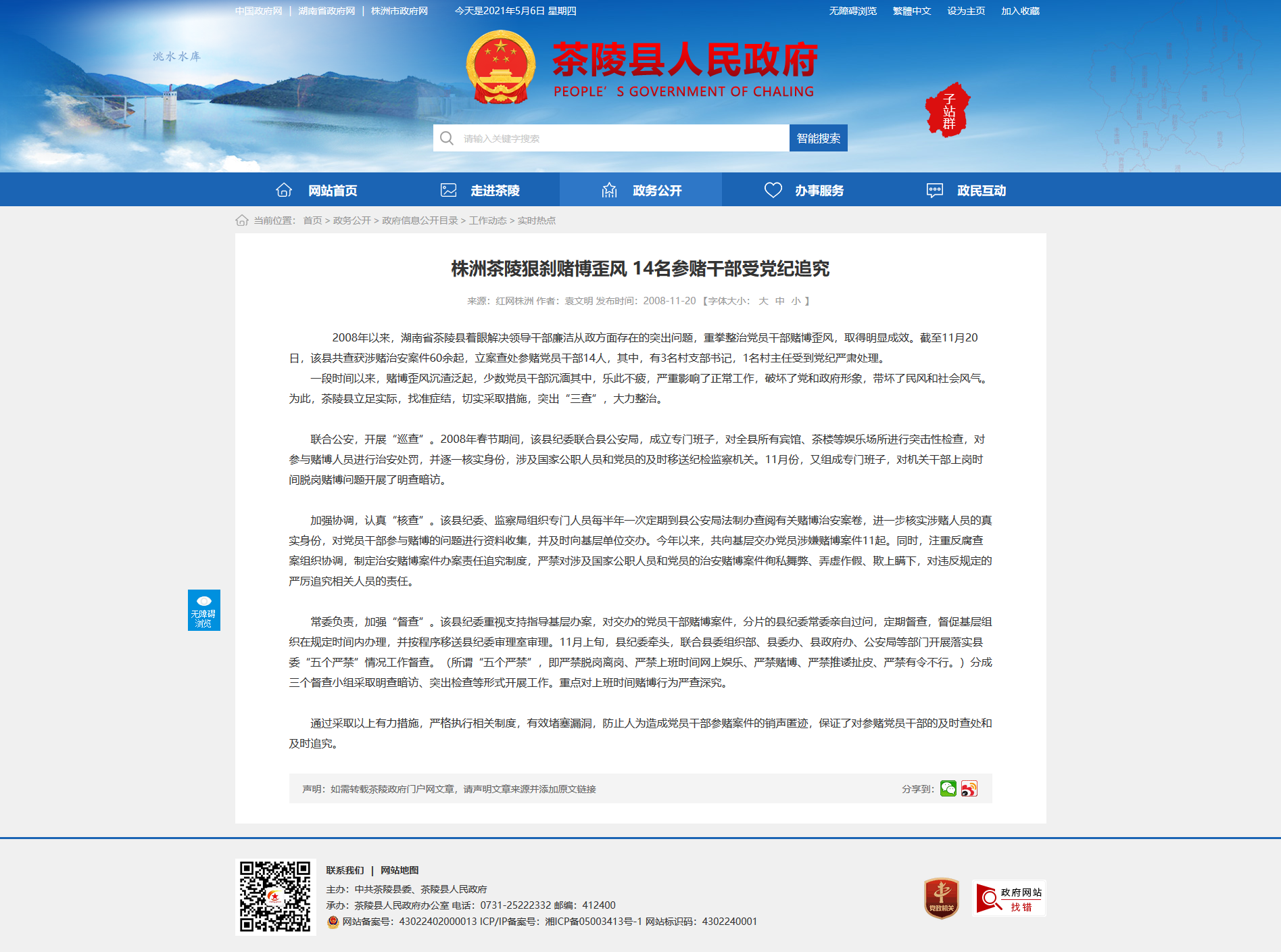 2008年以来,湖南省茶陵县着眼解决领导干部廉洁从政方面存在的突出问题,重拳整治党员干部赌博歪风,取得明显成效。截至11月20日,该县共查获涉赌治安案件60余起,立案查处参赌党员干部14人,其中,有3名村支部书记,1名村主任受到党纪严肃处理。