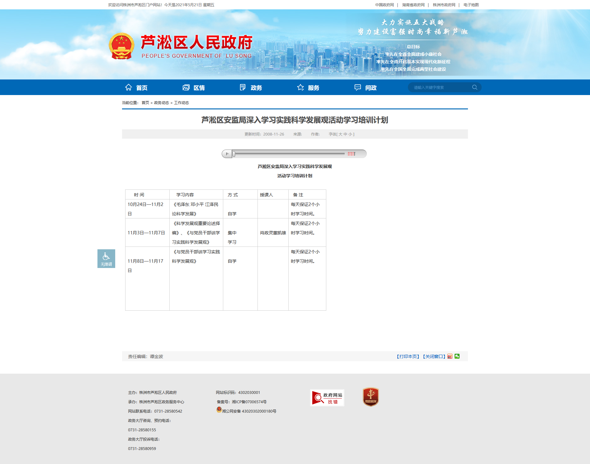 芦淞区安监局深入学习实践科学发展观活动学习培训计划