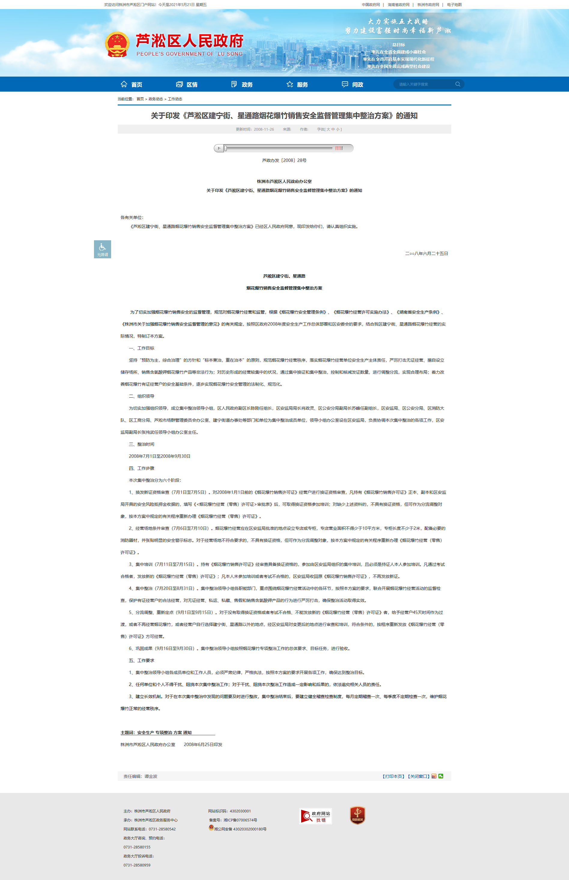 株洲市芦淞区人民政府办公室 2008年6月25日印发
