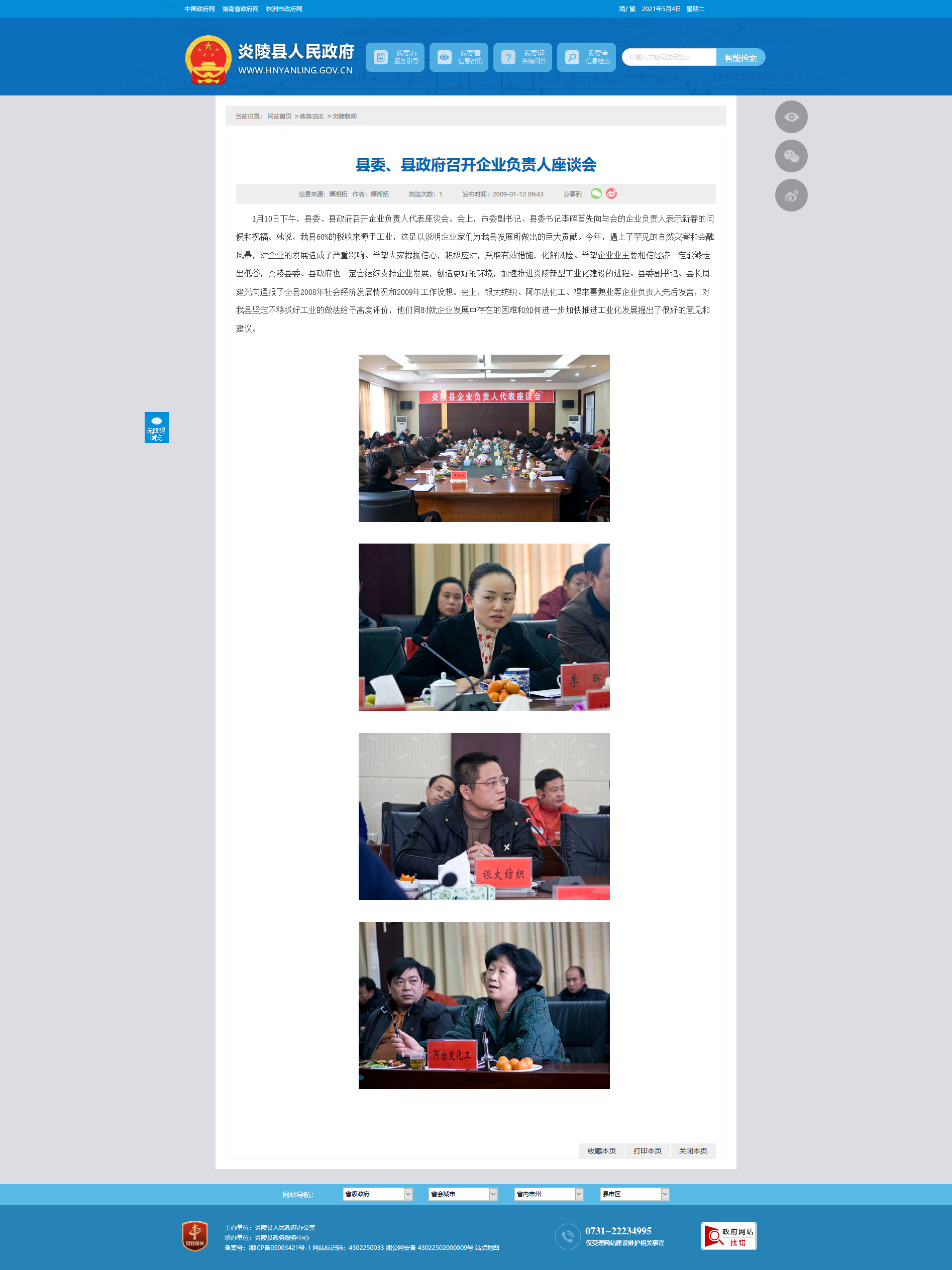 1月10日下午,县委、县政府召开企业负责人代表座谈会。会上,市委副书记、县委书记李晖首先向与会的企业负责人表示新春的问候和祝福。她说,我县60%的税收来源于工业,这足以说明企业家们为我县发展所做出的巨大贡献。今年,遇上了罕见的自然灾害和金融风暴,对企业的发展造成了严重影响。希望大家提振信心,积极应对,采取有效措施,化解风险。希望企业业主要相信经济一定能够走出低谷,炎陵县委、县政府也一定会继续支持企业发展,创造更好的环境,加速推进炎陵新型工业化建设的进程。县委副书记、县长周建光向通报了全县2008年社会经济发展情况和2009年工作设想。会上,银太纺织、阿尔法化工、福来喜鹅业等企业负责人先后发言,对我县坚定不移抓好工业的做法给予高度评价,他们同时就企业发展中存在的困难和如何进一步加快推进工业化发展提出了很好的意见和建议。