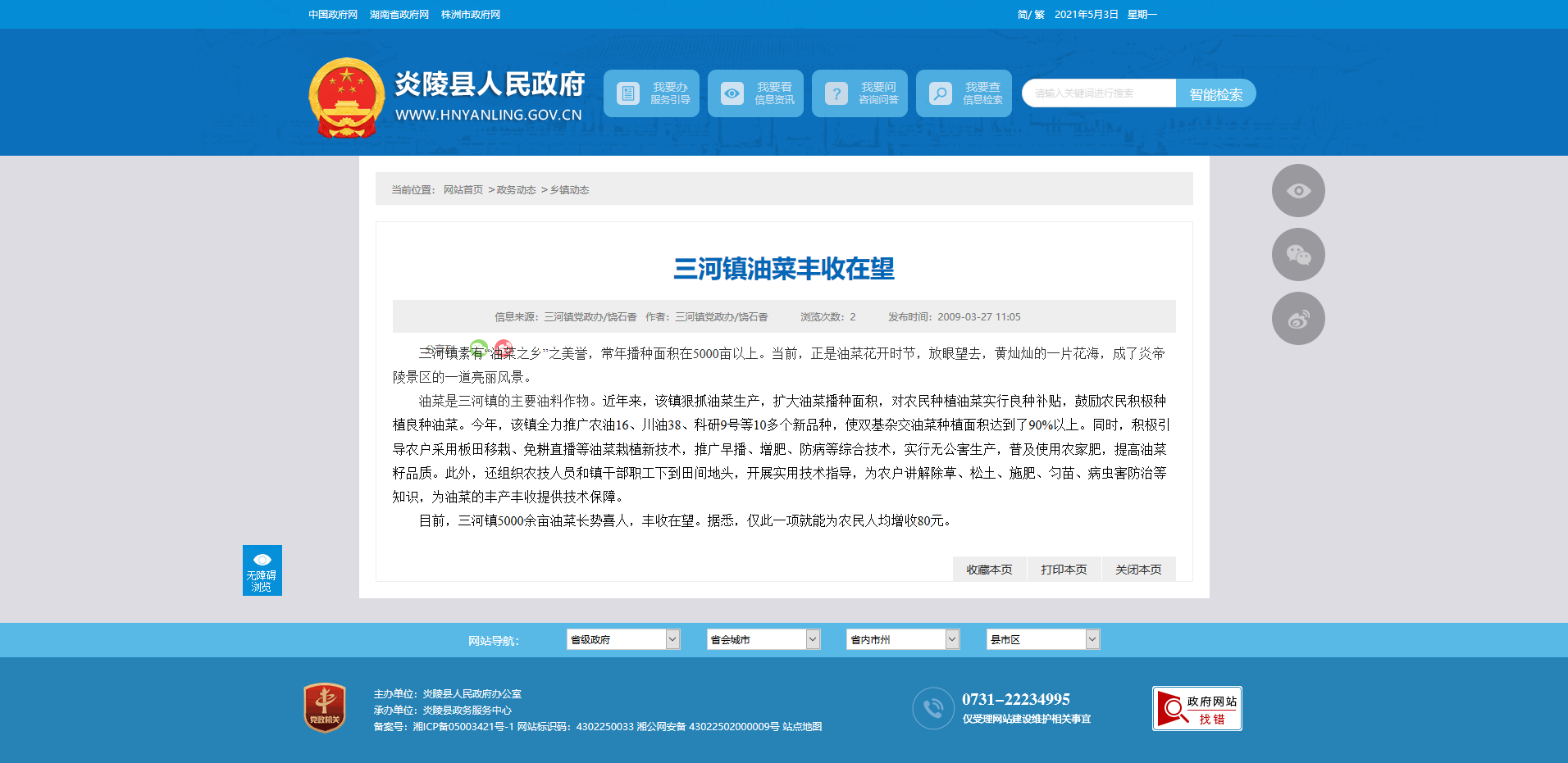 目前,三河镇5000余亩油菜长势喜人,丰收在望。据悉,仅此一项就能为农民人均增收80元。